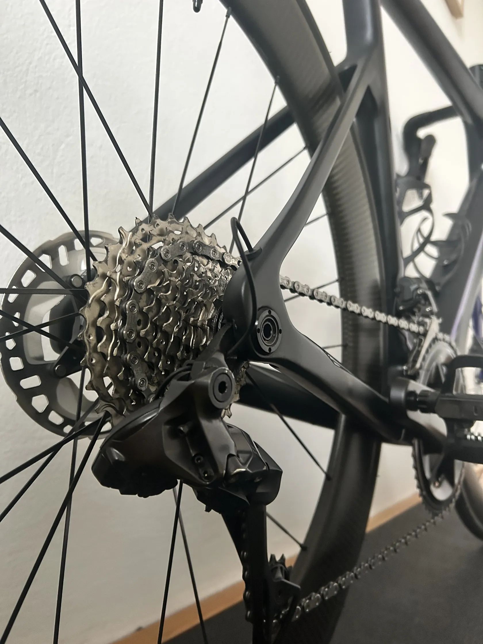 Výbava: Karbonový aero rám velikost L Sada Ultegra Di2 8100 Kazeta 11-32 Kliky 50-34 Karbonová kola Mavic cosmic SL 65 Představec a řidítka Deda vinci + deda držák na cyklopočítač