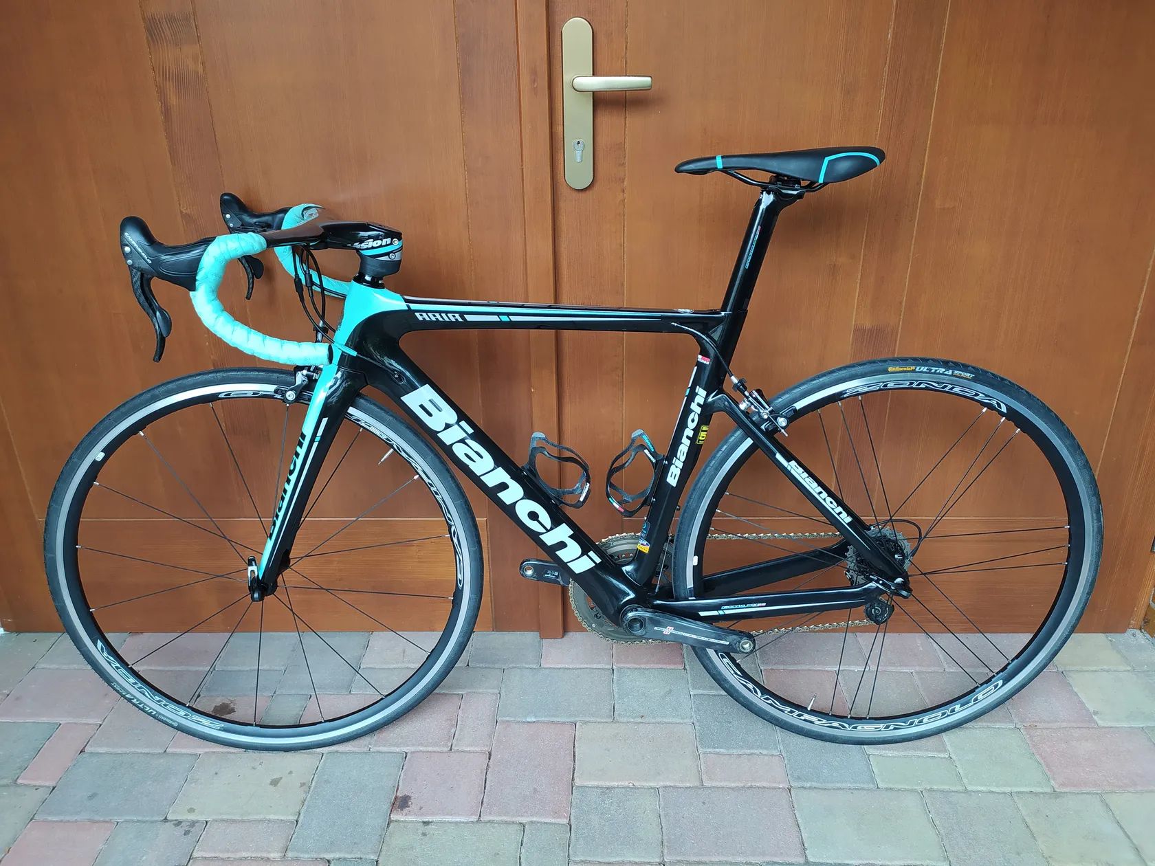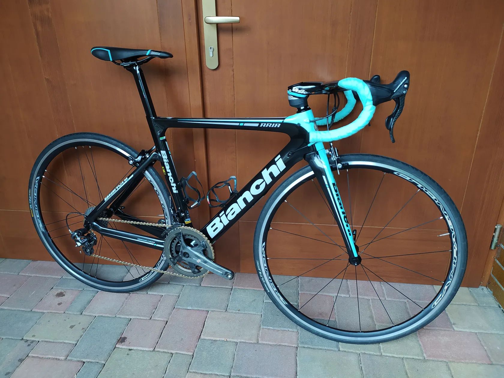 Prodám Bianchi Aria v perfektním stavu, ježděné rekreačně za sucha. Velikost: 53 (na postavu cca 165-180 cm, na fotkách nastaveno na 175 cm). Vybavení: Campagnolo Record 11s, mechanické Převody: převodníky 50-34, kazeta 12-27 Record, případně 11-27 Chorus Kola: Campagnolo Zonda (hliník), prakticky nová, jezdil jsem na jiných Řídítka: kompakt karbon včetně držáku na garmin Sedlo: Selle San Marco Košíky: Bianchi karbon Přidám doklad o koupi + novou omotávku. Předání: Praha Radotín, případně Písek