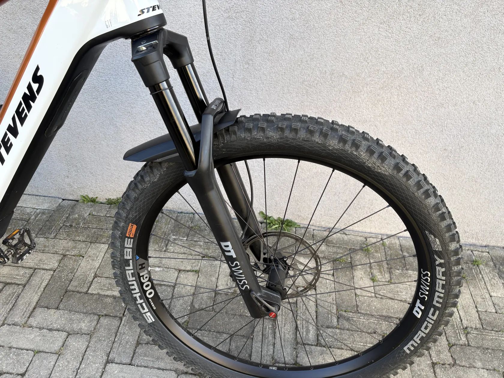Prodám karbonové elektro kolo STEVENS E-Inception AM 8.7.1 GTF, odkaz prodejce https://www.top-cyklo.cz/stevens-e-inception-am-8-7-1-gtf-sunset-gold-white10. Kupováno před rokem, záruka, najeto necelých tisíc km. Vše funkční, jako nové, nepoškozené. Na začátku vyměněny oba tlumiče za DT Swiss F 535 stejných zdvihů, lepší anatomická řídítka SQLAB,. Originál tlumiče od Rock Shox nikdy nejeté dám ke kolu. Na kole nový řetěz ještě nejetý. Komplet kolo se všemi úpravami vyšlo na cca 150 tisíc. Jeté pouze rekreačně, žádné skoky atd.