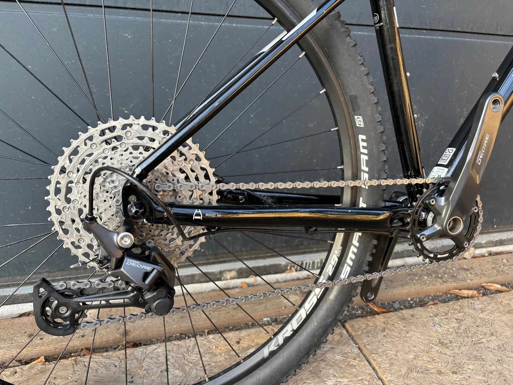 Hliníkový rám. Vidlice SR Suntour. Sada Shimano Deore.