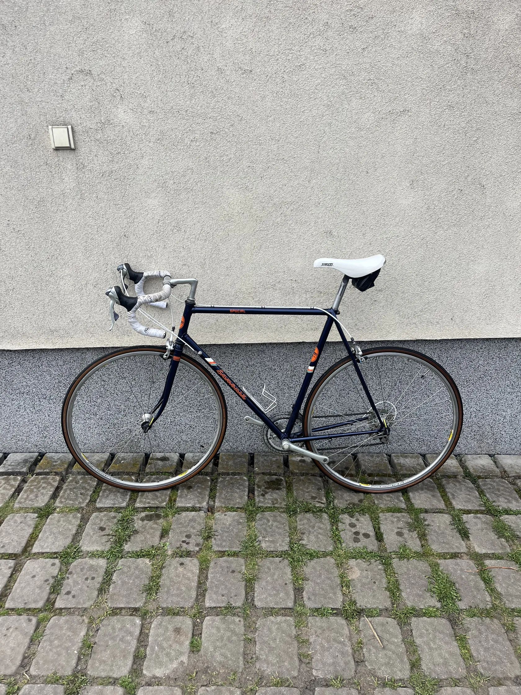Prodám závodní silniční kolo Favorit F1 Speciál, osazený kompletní sadou Shimano 105 první generace (integrované řazení), spolehlivé výplety Mavic Cosmos, nový lak, bovdeny a potisky, od renovace v roce 2021 najeto pouhých 610 km. Důvod prodeje - nevyužiju ho.