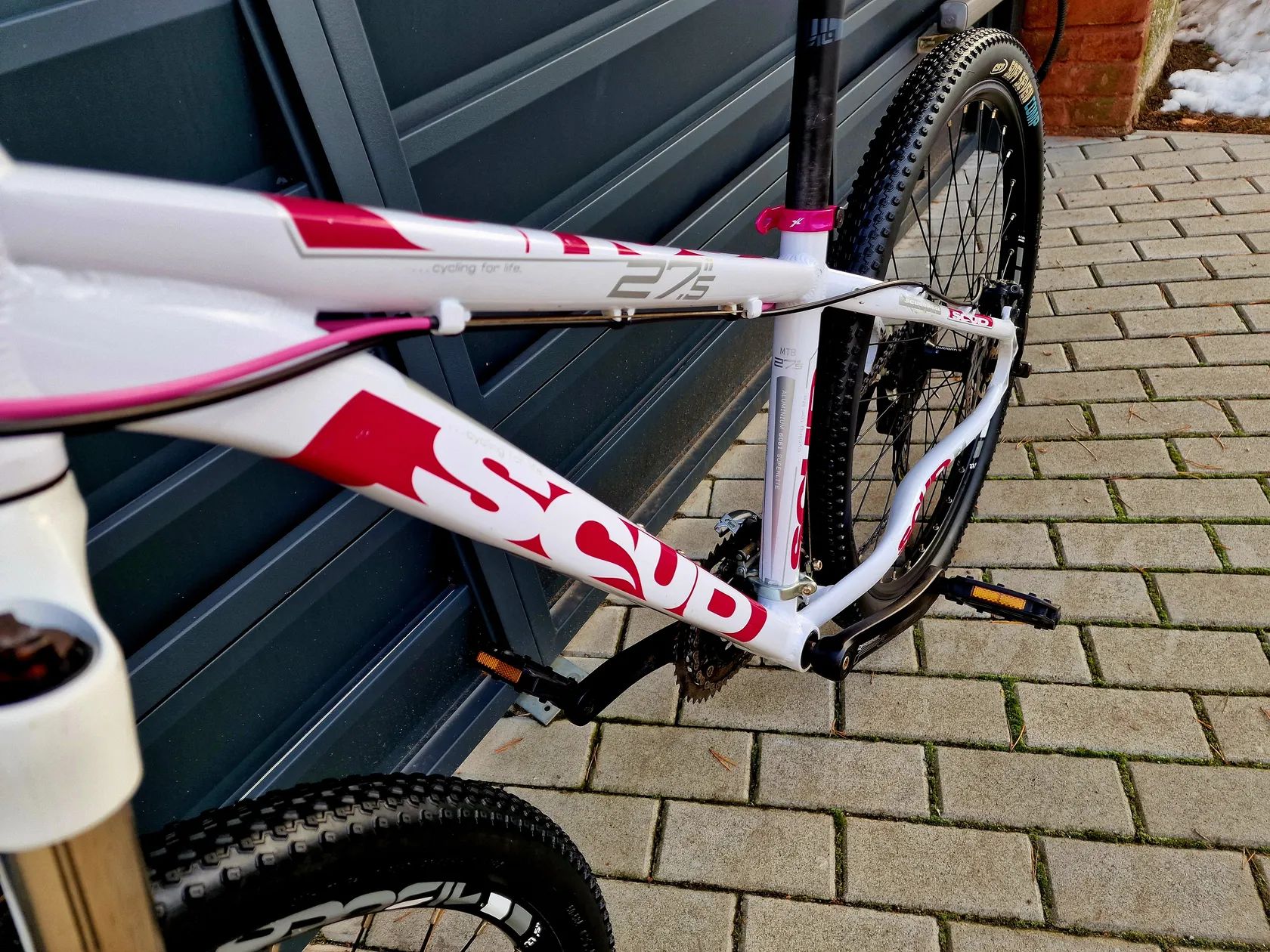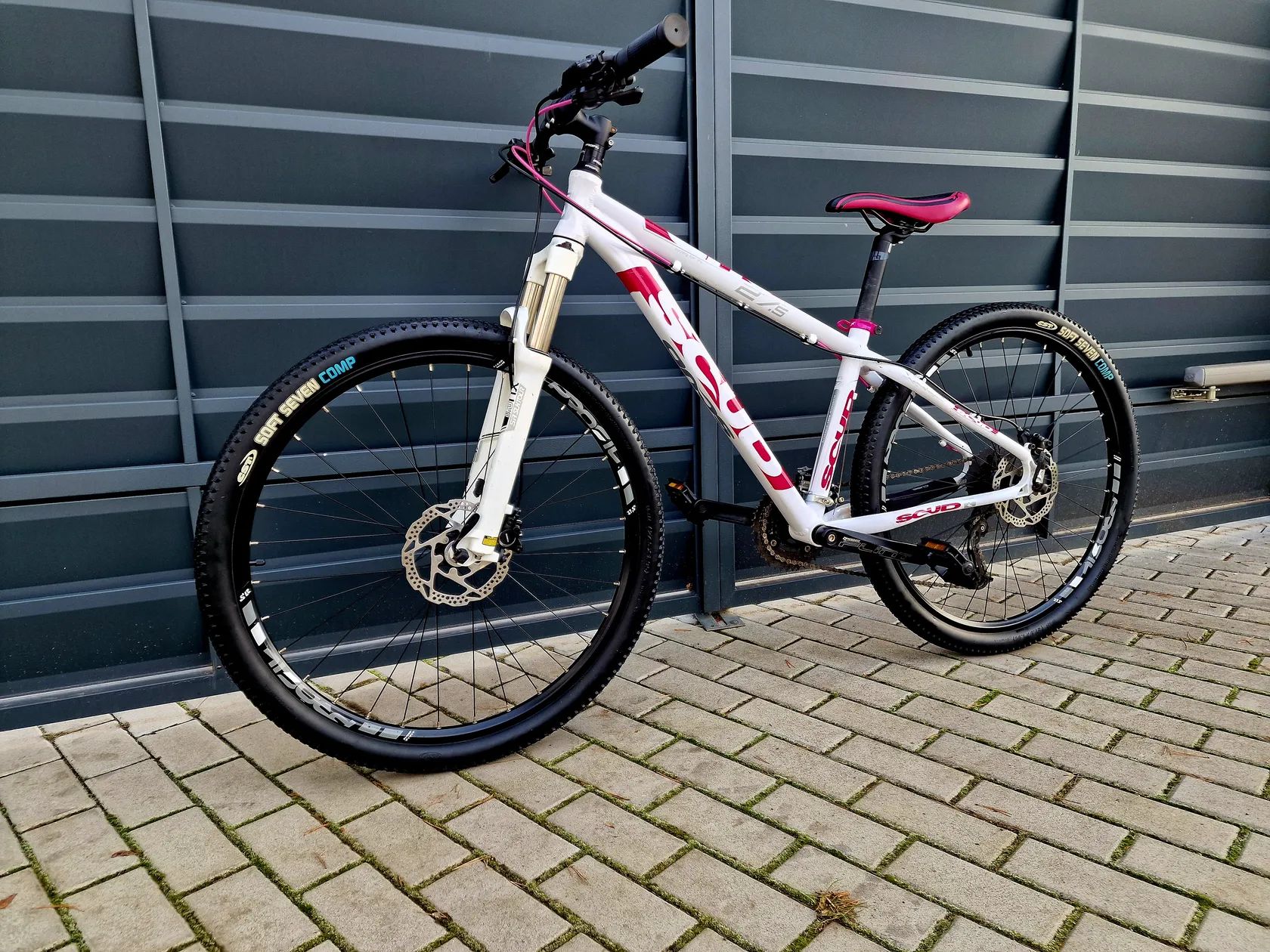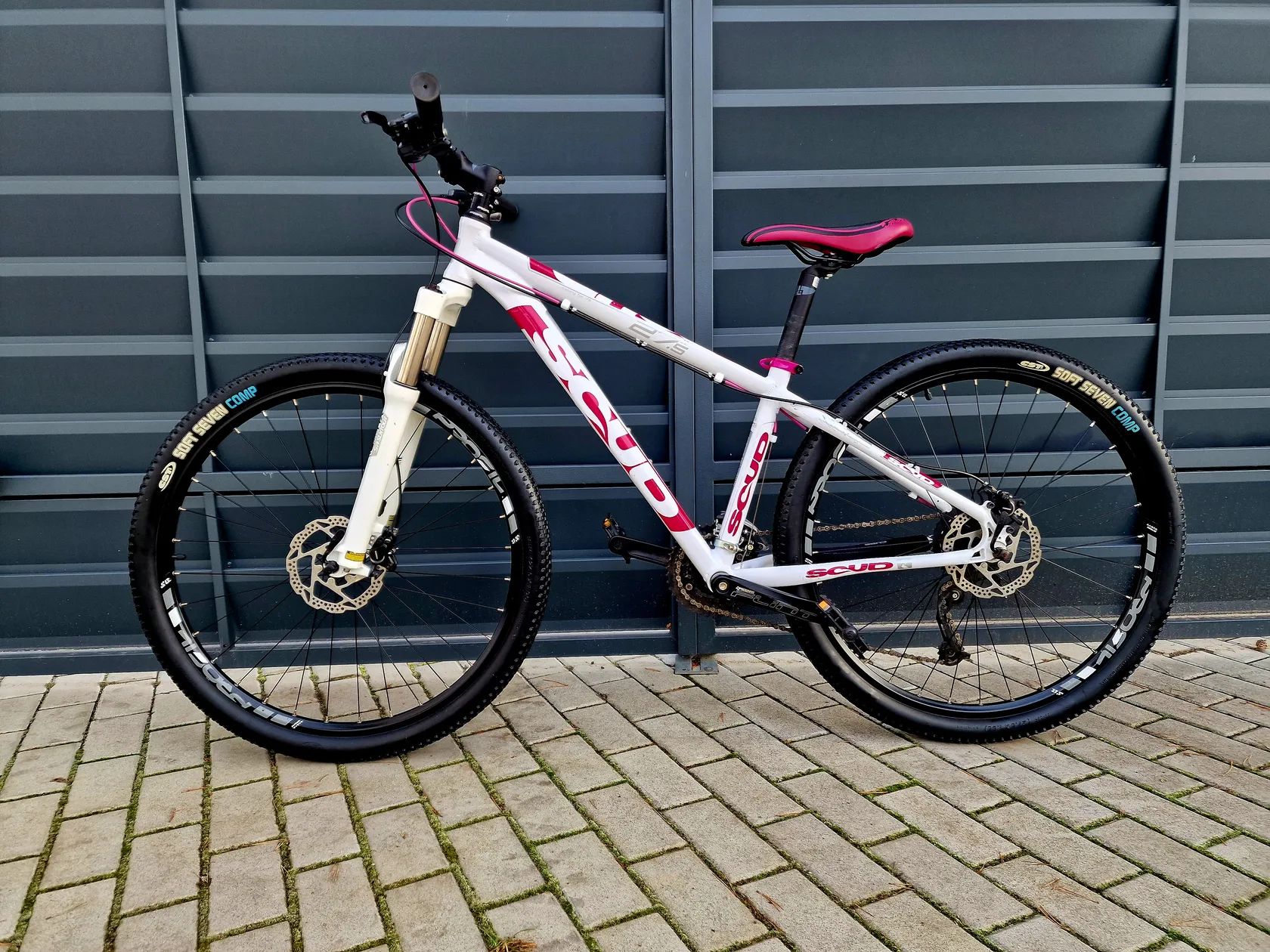 Dámské/Dívčí horské hliníkové kolo Scud 27,5" Kolo je v pěkném stavu bez vůlí a závad. Komplet seřízené a připravené pro nového majitele. Hliníkový rám velikost 15" Ráfky velikost 27,5" Přehazovačka Shimano Alivio Přesmykač Shimano Páky řazení Shimano 24 převodů (3x8) Hydraulické kotoučové brzdy Shimano Odpružená vidlice s nastavením tuhosti SR XCR Kliky Prowheel Středy kol Shimano Vhodné pro postavu cca 140-170cm Při prodeji vystavím doklad o koupi. Lze poslat poštou při platbě převodem na účet. Prohlídka možná kdykoliv po dohodě. Záruka na původ zboží. Jirny (Praha-Východ)