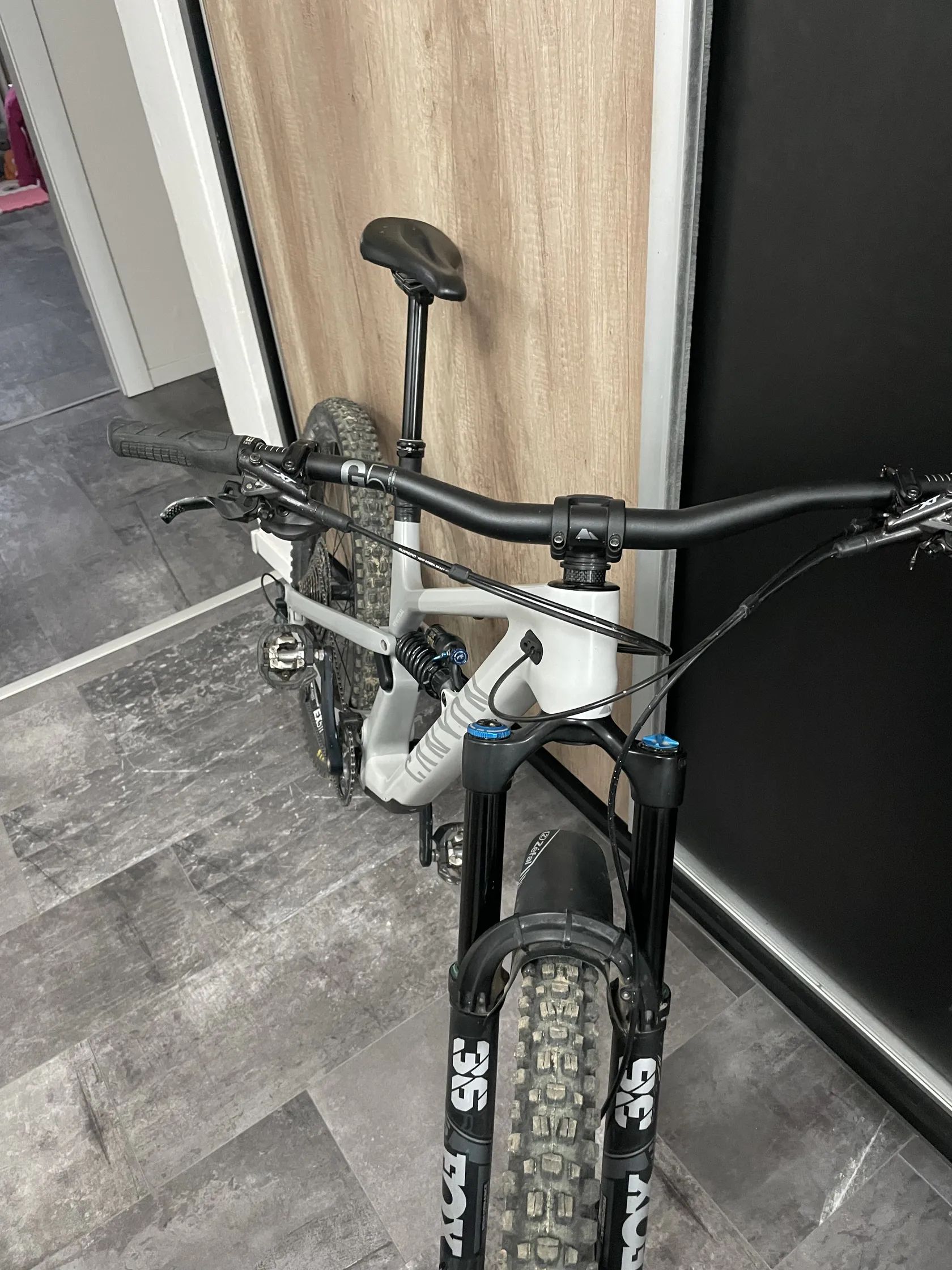 V inzerátu je uvedena teleskopická sedlovka Fox Transfer (cca rok stará) – kvalitní, spolehlivá vyšší třída pro agresivnější jízdu.