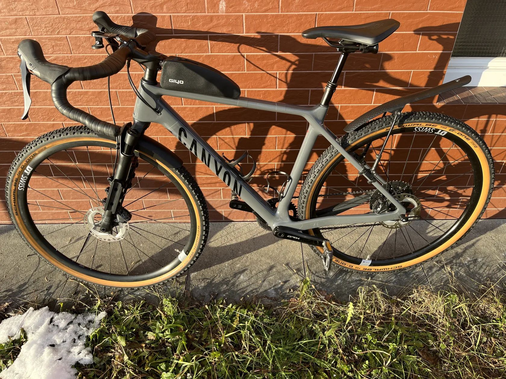 Základní výbava: Rám - Canyon Grizl CF SL, Lehký robustní karbonový rám s geometrií Gravel Pro, 50mm průchodností plášťů a prodlouženým rozvorem pro větší stabilitu v terénu. Rozměry Osy: 12x142 mm, váha: 1.03 kg Odpružená vidlice - RockShox Rudy 30, Rozměry Osy: 12x100 mm, Průměr Noh Vidlice: 30 mm, Zdvih: 30, Průměr krku vidlice: 1 1/4" Přehazovačka - Shimano GRX RX812 GS Kazeta - Shimano Deore XT M8000 11-42 11s Kliky - Shimano RX810 40T, 11-Středové složení - Token Ninja Lite BB4124, typ 86,5 Řetěz - Shimano CN-HG601 11s s povrchovou úpravou SIL-TEC s ultra nízkým třením pro přesné řazení a zvýšenou odolnost. Brzdy/páky - Shimano GRX RX810 Brzdový kotouč - Shimano Deore XT MT800, 160 mm, center lock Přední kolo - DT Swiss G1800 Spline, 12x100 mm, Výška ráfku: 25 mm, materiál ráfku: Hliník, váha: 880 g zadní kolo - DT Swiss G1800 Spline SH11, výška ráfku: 25 mm, váha: 1.01 kg, 12x142 Představec - Canyon ST0035, Lehký a odolný hliníkový představec pro gravel a silniční kola. Průměr krku vidlice: 1 1/4", Průměr Objímky: 31,8 Sedlo - Fizik Argo Terra X5 Teleskopická Sedlovka - Iridium SP0058 Dropper Post, Průměr Objímky: 27,2 mm