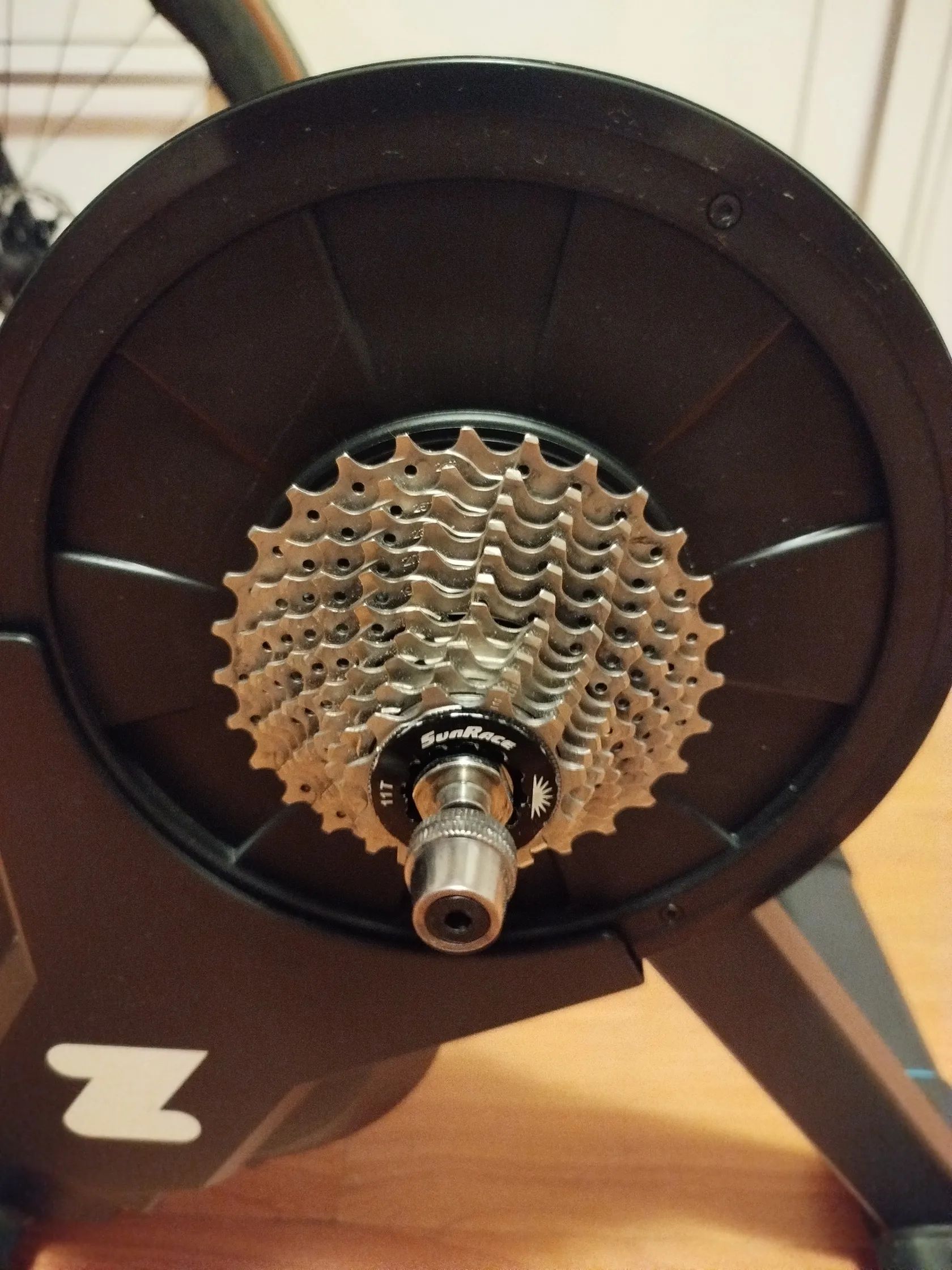 Trenažér je ve velmi dobrém stavu, používaný jen rekreačně. Součástí je originální příslušenství (napájecí adaptér, rychloupínák, momentálně hledám ještě adaptér na pevnou osu). Na trenažeru je nainstalovaná standardní 11speed kazeta.