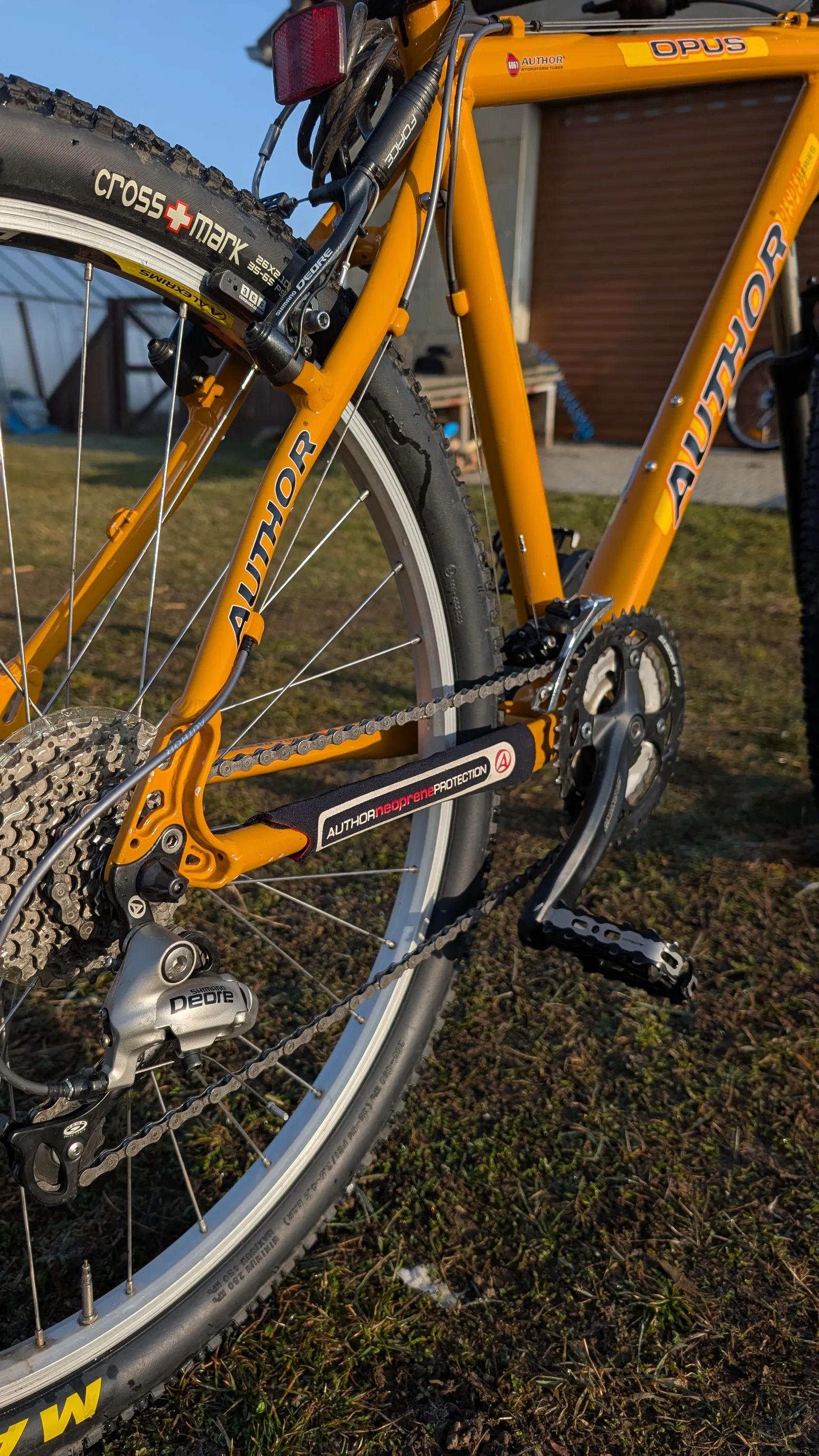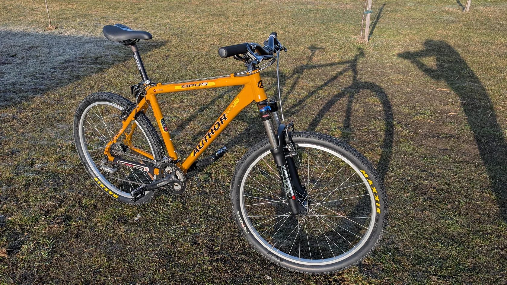 Horské kolo Author Opus, najeto max 200km a dlouhodobě uloženo (zapomenuto) v suché garáži. Vyčištěno a umyto od prachu a pavučin, promazáno, seřízeno a je ve stavu nového kola.