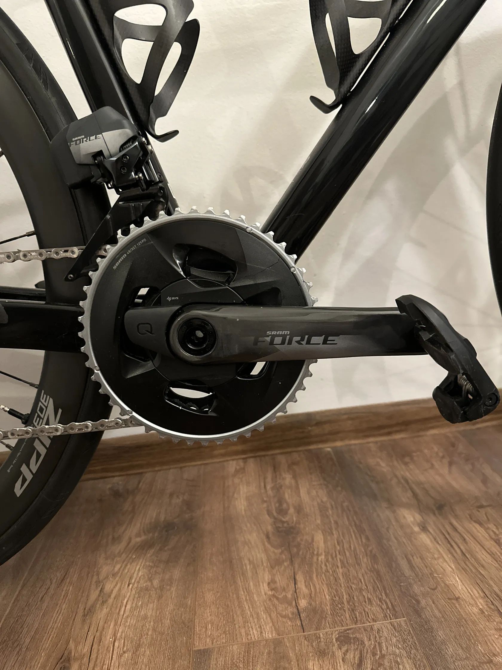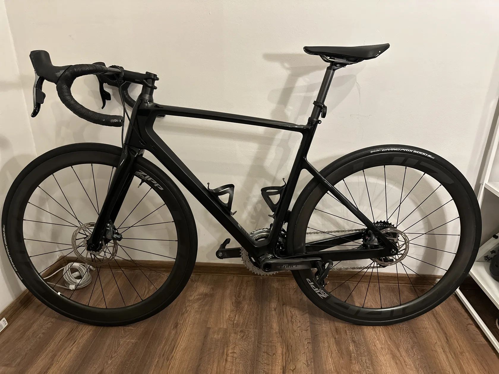 Kolo je osazeno bezdrátovou elektronickou sadou SRAM Force eTap AXS (12 rychlostí) a karbonovými koly Zipp 303 S. Celkový nájezd kola je cca 10 000 km, kolo je pravidelně servisované a ve velmi dobrém stavu.