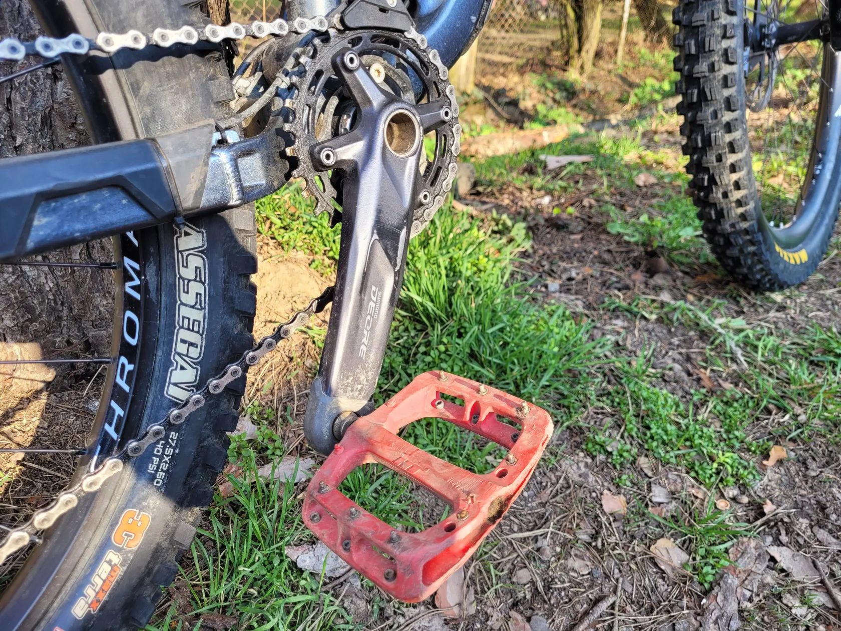 Brzdy: Shimano 4-pístové (typ 6120) – silné brzdění pro sjezd a enduro.