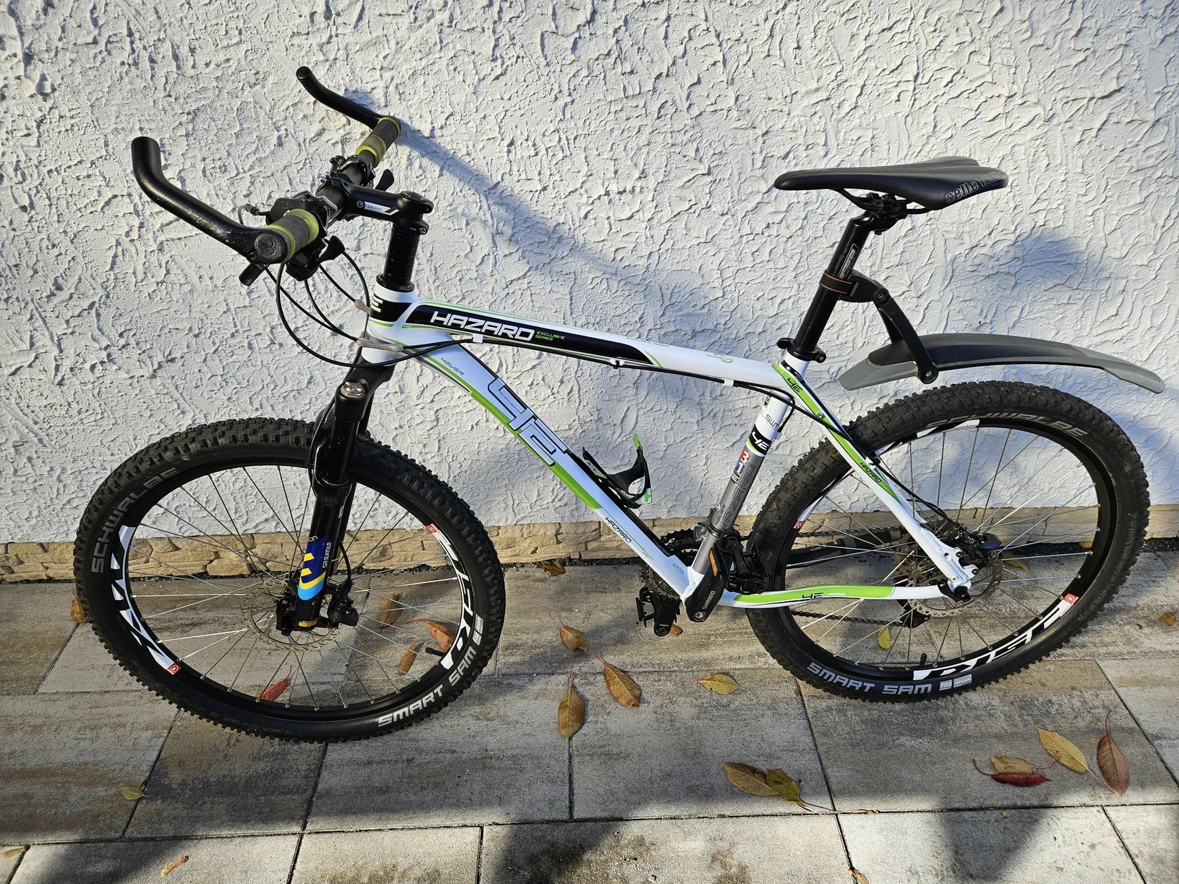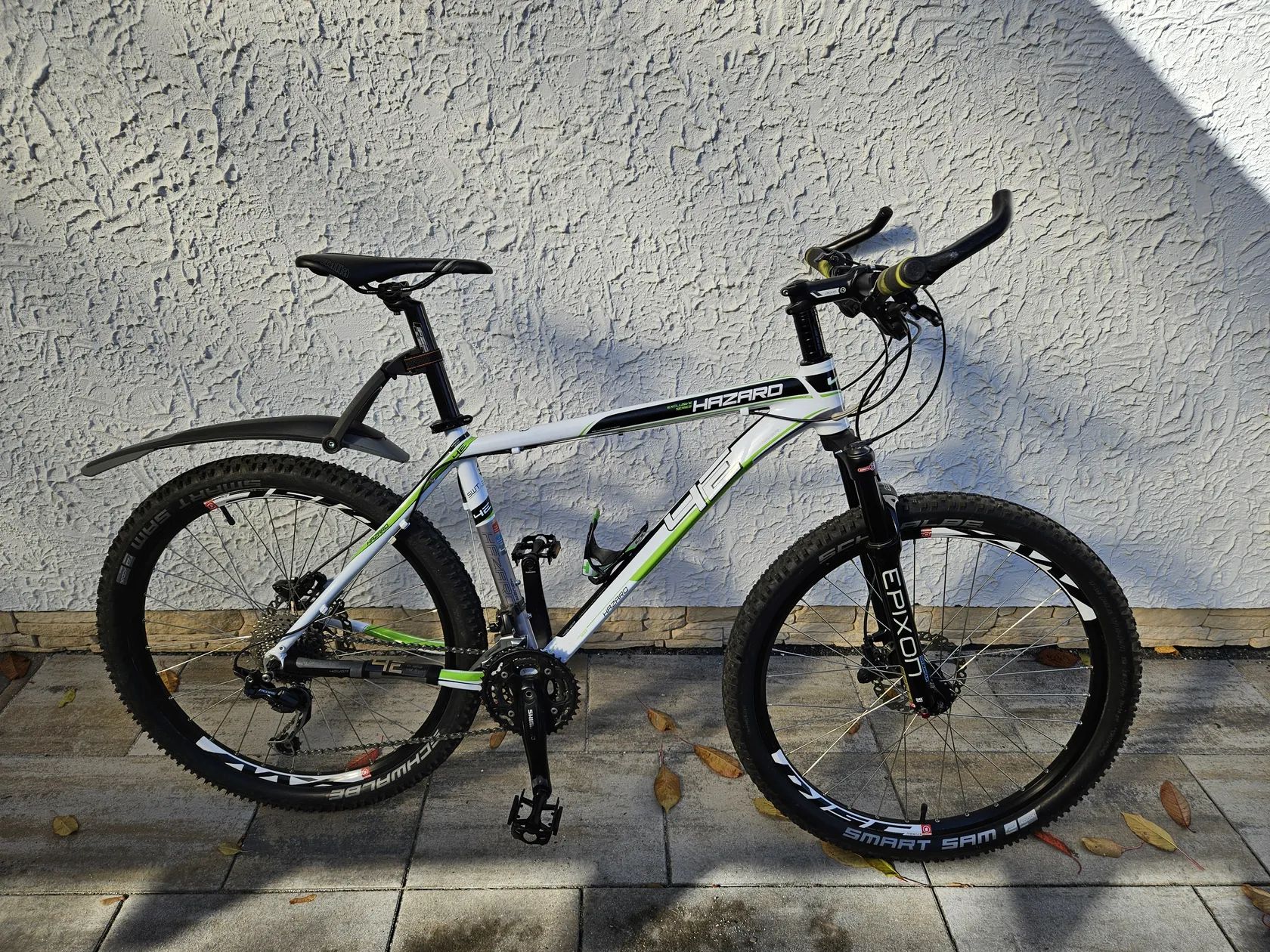 Prodám mtb 4ever Hazard Disc "26", vel. rámu 18,5 (pro postavu 165-185cm). První majitel, koupeno nové 2016, udržované, pravidelně servisované. Přesmykač, kazeta a řazení Deore, původní vidlice SR SUNTOUR XCR 100 RLO vyměněna za SR EPIXON (2020), původní brzy HAYES vyměněny za Shimano BR-M 6100 (2022), nové pláště Schwalbe Smart Sam 26x2,25. Kolo naprosto bez závad, plně funkční, stačí jen jezdit. Ke kolu přidám: držák na bidon, zadní blatník (viz. foto), dále nový řetěz Shimano ULTREGA 10s, 116L, brzdové destičky Galfer FD 452 a rámovou brašnu. Pouze osobní odběr v Říčanech nebo v Praze s možností prohlídky a vyzkoušení.