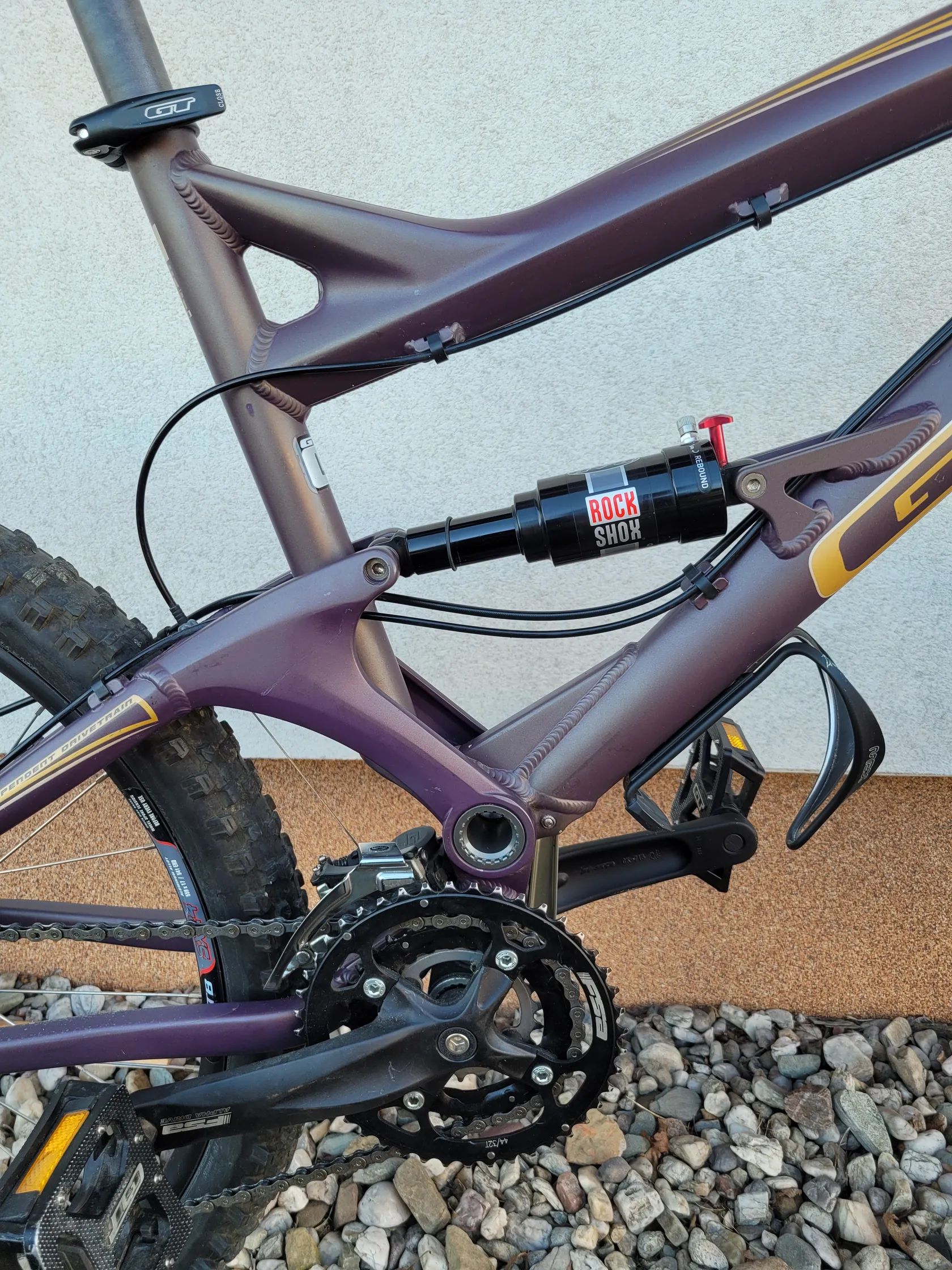 Kolo je v původní spec.: Rám Alu 6061, velikost L Vidlice SR Suntour Mag 32 Air, zdvih 140 mm Tlumič Rock Shox BAR 2.1 Zdvih přední 140 mm Zdvih zadní 150 mm Řazení Shimano Deore, 9 rychlost Přesmykač Shimano Deore Přehazovačka Shimano Deore Kazeta SRAM PG-950, 11-32 Řetěz Shimano Kliky FSA Alpha Drive - 44, 32, 22 Pedály Shimano PDM -520 Hlavové složení FSA Orbit X 1 1/8'' Představec GT Řidítka GT, vlaštovky, oversize Brzda přední Tektro Auriga Pro, hydraulické diskové, 180 mm Brzda zadní Tektro Auriga Pro, hydraulické diskové, 160 mm Brzdové páky Tektro Auriga Sedlovka GT alloy Sedlo WTB Pure V Nába přední Shimano Disc Nába zadní Shimano Disc Ráfky DT Swiss Dráty WTB SX -24 Pláště Kenda Nevegal 26 x 2.3 / 26 x 2.1, 120 TPI, kevlar