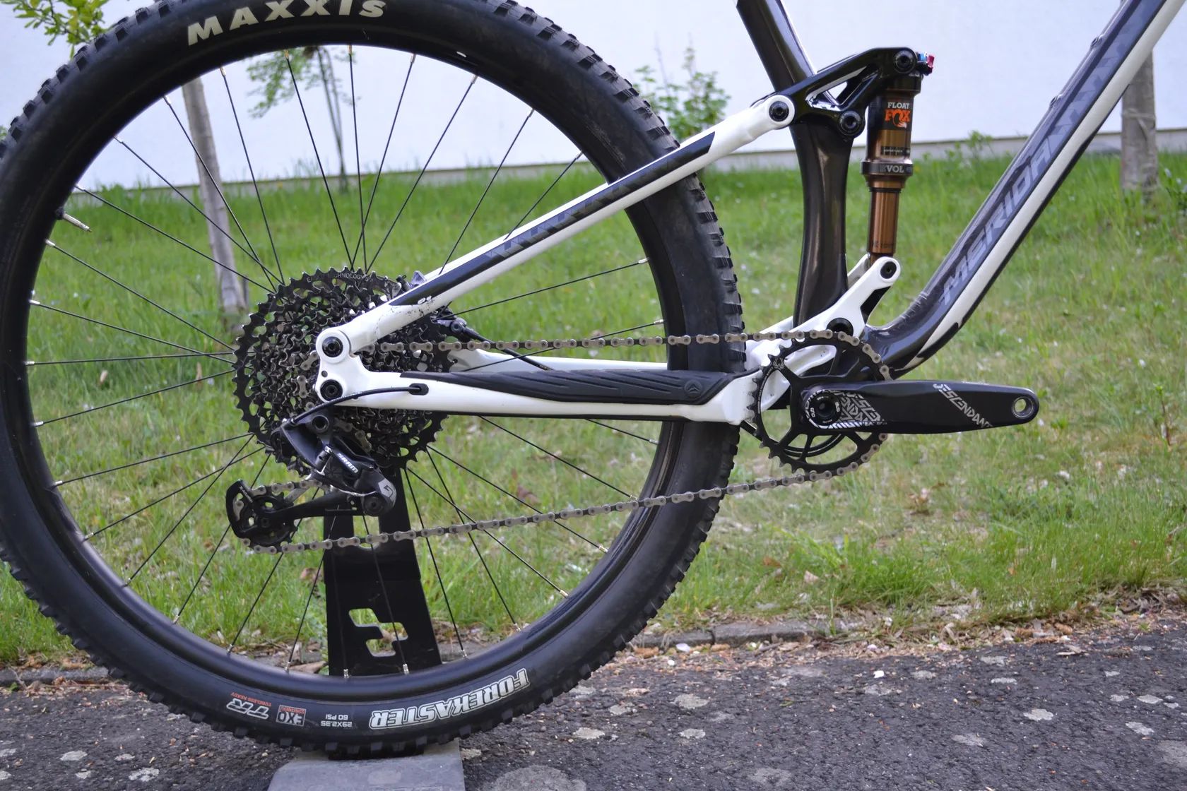 Ze specifikace bych určitě zmínil vidlici na zdvihu 130 mm Rock Shox Revelation RC Air a tlumič Fox Float DPS Factory (Kashima coated). Dále kompletní sadu 1x12 (10-52T) Sram Eagle GX, brzdy hydraulické Shimano XT BR-M8120 čtyřpístky, Sram Descendant 6K Eagle kliky, boost kola na pevných osách Merida Expert TR 29 mm vnitřní šíře a teleskopický dropper Kindshock Lev Integra (150 mm). Vše je v továrním osazení až na brzdy a tlumič - jedná se o výrazný upgrade, který kolo posouvá ještě o level výš. Detailní specifikace viz. níže v inzerátu.