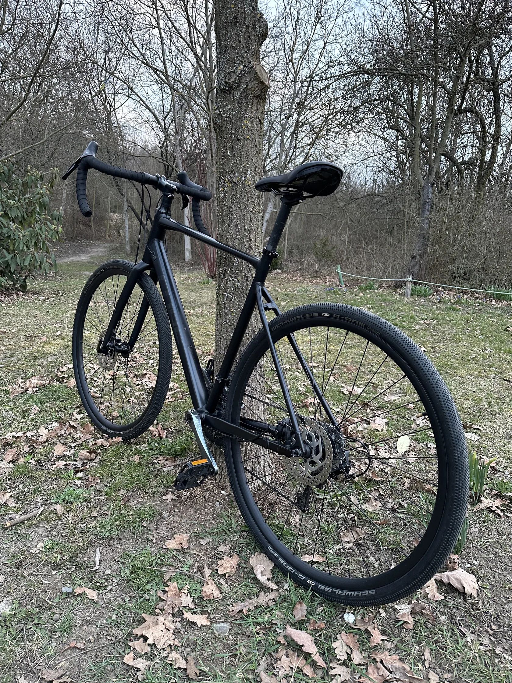 Hliníkový rám + karbonová vidlice – běžná kombinace pro gravel ve střední třídě (komfort, dobrý přenos síly)