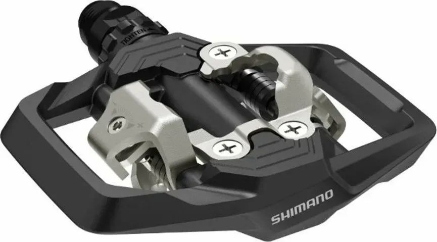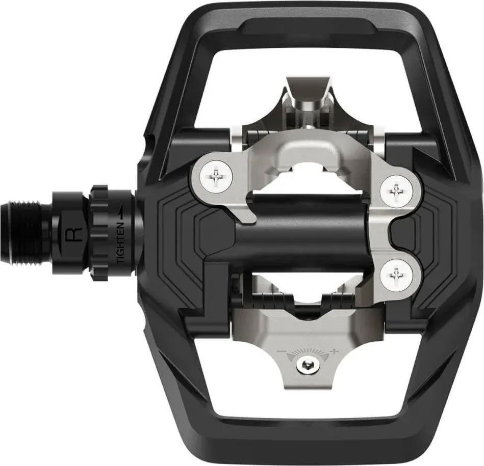 Trailové SPD pedály pro jistější ovládání při dynamických jízdách na terénních stezkách. Široká oboustranná platforma zlepšuje stabilitu obuvi na pedálech a přenos energie.