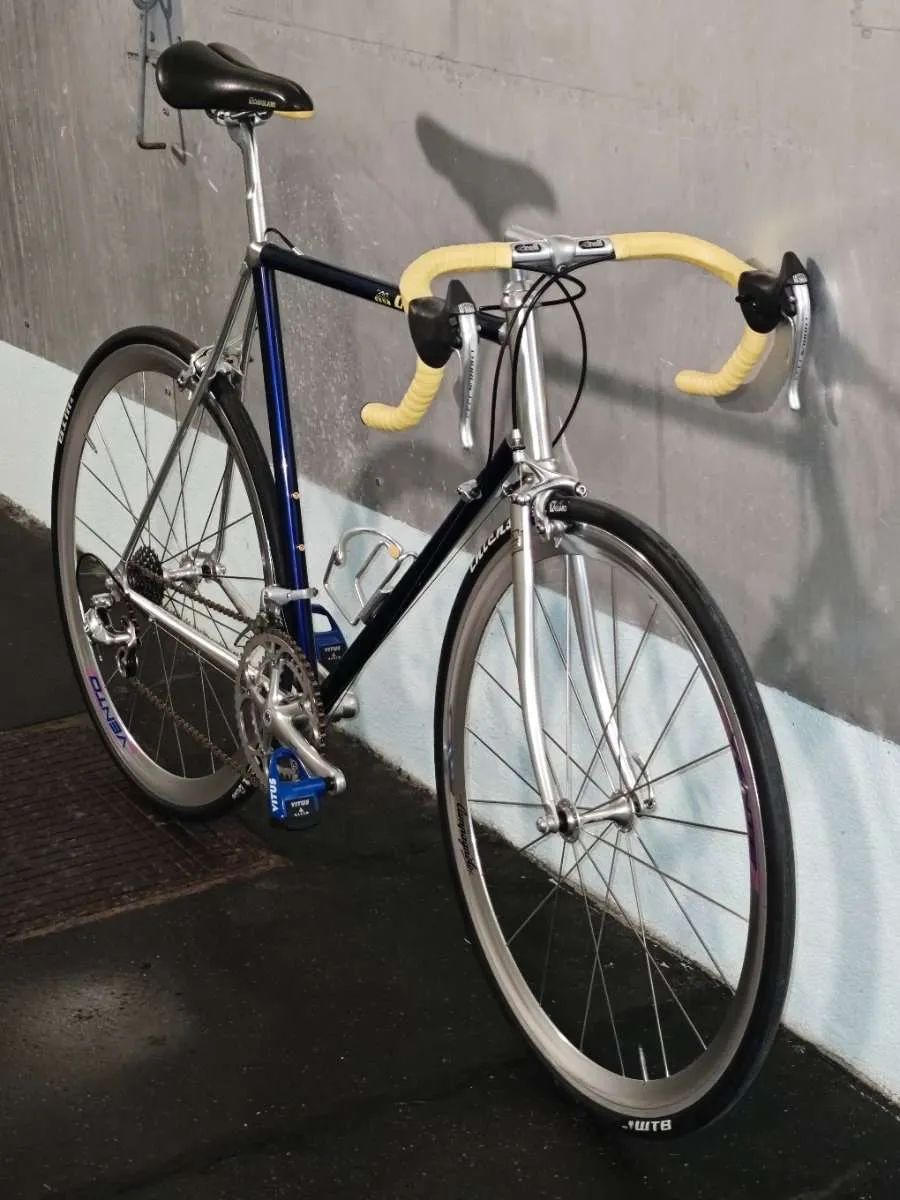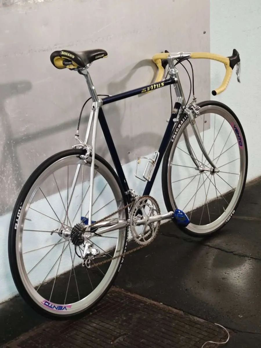 Vitus 979 - stav zánovního kola Rám byl před stavbou nový, vybalený z krabice. Kompletní sada v krásném a funkčním stavu - Campagnolo Chorus 8 x 2 převody (hlávko, střed sedlovka taky) Kola ve skvělém stavu, párkrát jeté - Campagnolo Vento Zajímavé sedlo Bassano s možností nastavení šířky Představec Cinelli A1