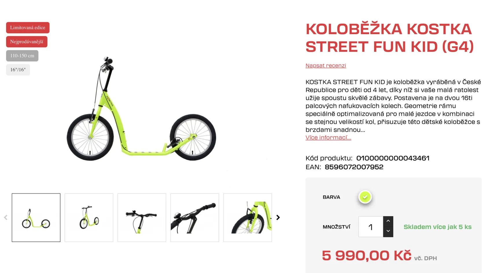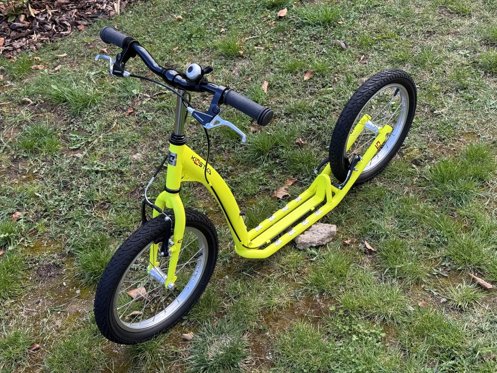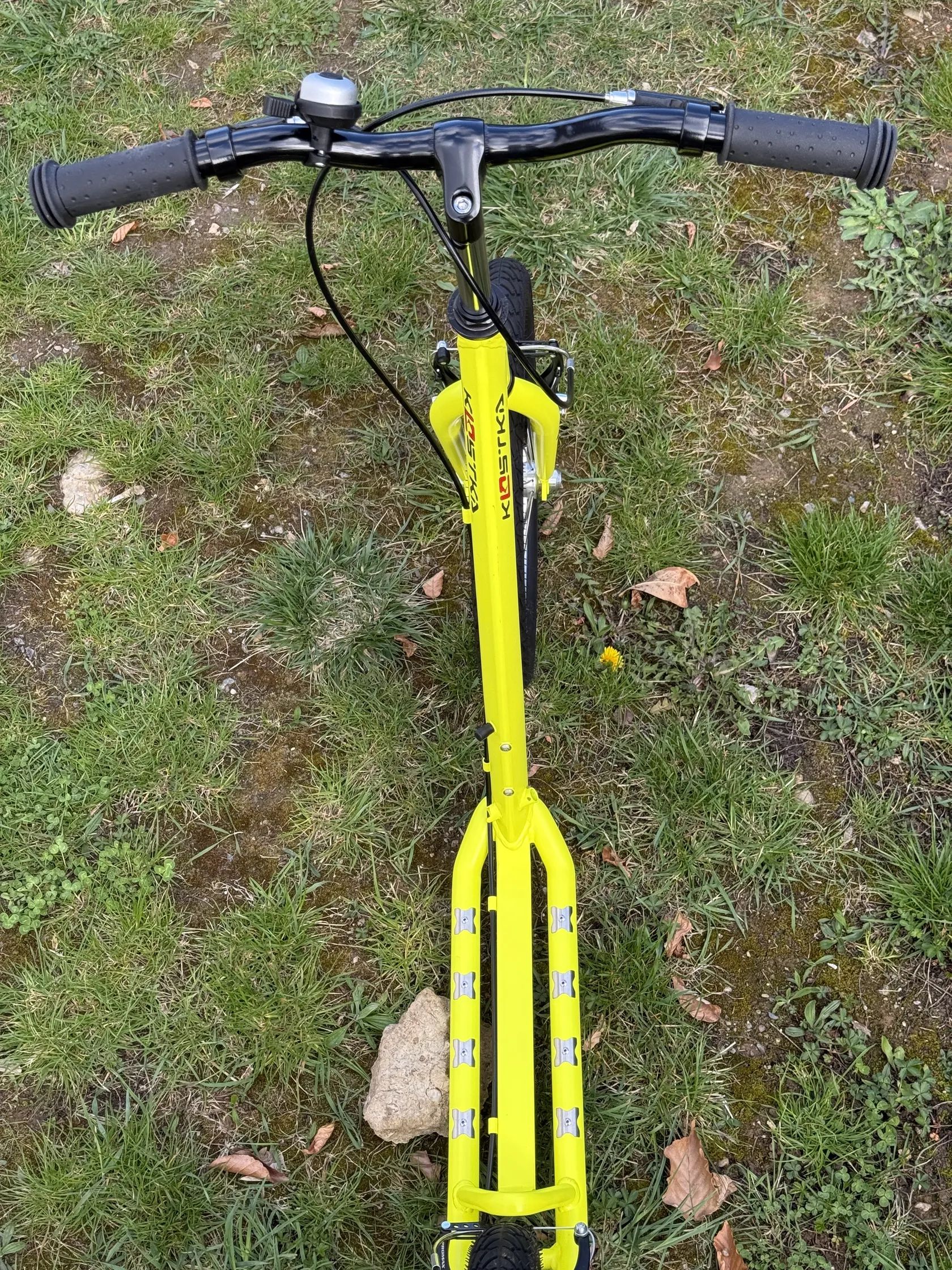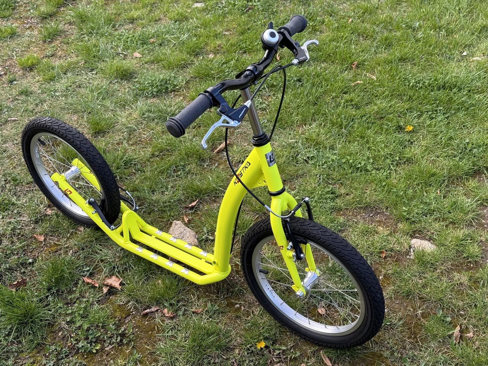 KOSTKA STREET FUN KID je koloběžka vyráběná v České Republice pro děti od 4 let, díky níž si vaše malá ratolest užije spoustu skvělé zábavy. Postavena je na dvou 16ti palcových nafukovacích kolech. Geometrie rámu speciálně optimalizovaná pro malé jezdce v kombinaci se stejnou velikostí kol, přisuzuje této dětské koloběžce s brzdami snadnou ovladatelnost, výbornou stabilitu a perfektní jízdní vlastnosti. Použitím úzkých nábojů Kostka o šířce 65 mm s průmyslovými ložisky bylo možné dosáhnout zmenšení celkové šířky koloběžky, to zamezuje riziku kontaktu nohy s rámem koloběžky a předchází tak zranění. Skvělé jízdní vlastnosti doplňují pláště Kenda Khan. Díky prodloužení délky nášlapu na 300 mm došlo ke zvýšení rozsahu použití koloběžky pro větší děti. Koloběžka pro děti KOSTKA STREET FUN KID je velmi hravá a bezpečná zároveň.