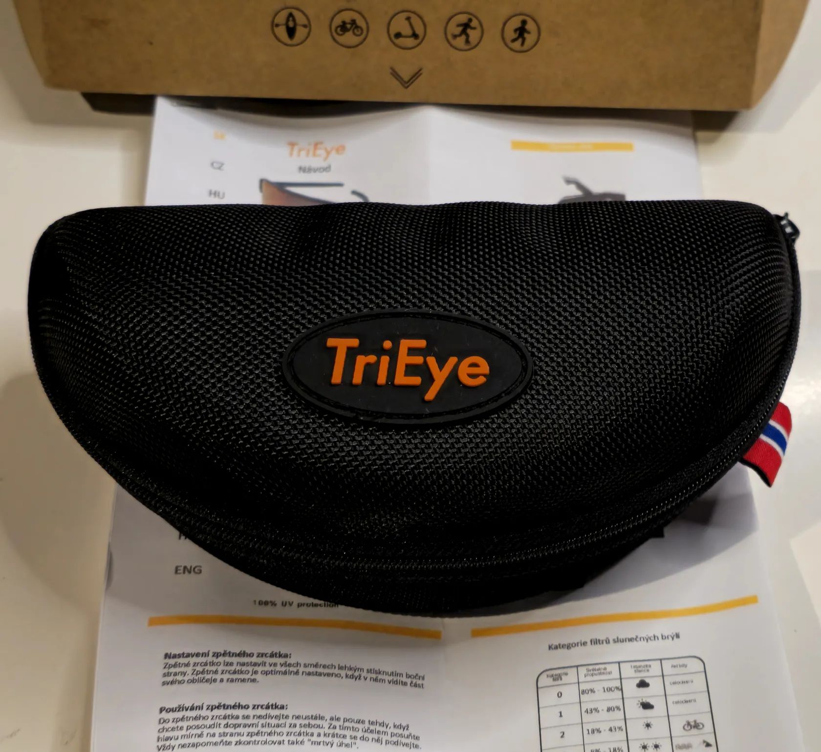 Prodám úplně nové sportovní TriEye s integrovaným a nastavitelným zpětným zrcátkem, které Vám umožní vidět za sebe, aniž byste museli otáčet hlavu. Obroučky termoplastic TR90, které se ohýbají pod tlakem, takže kopírují Vás obličej. Polycarbonátové čočky odolné proti poškrábání. UV 400, kat. 3.