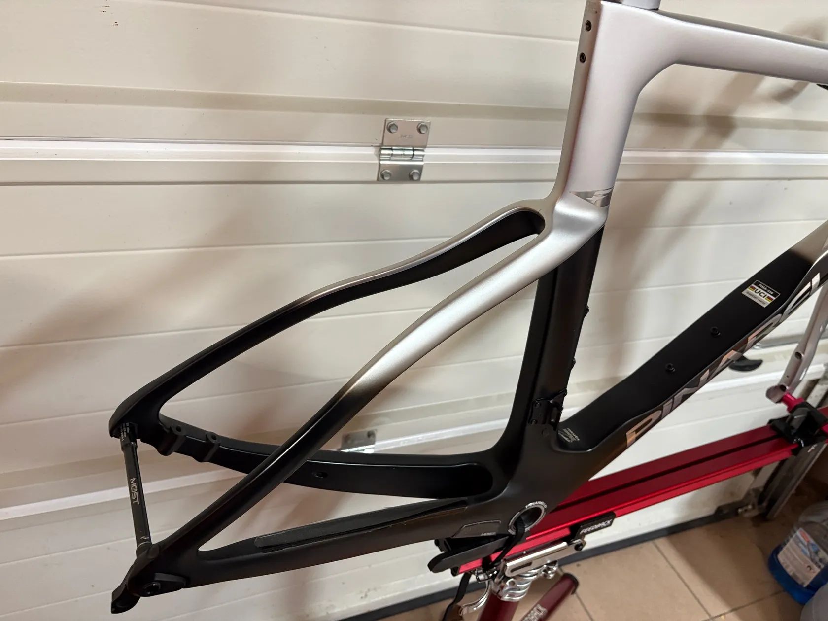 Rámová sada Pinarello Dogma F , velikost 54 (do 182 cm) Nejvyšší model od Pinarella, TOP stav, rám jetý ca 3000km Součást prodeje - karbonová řídítka Most Talon (120/400)