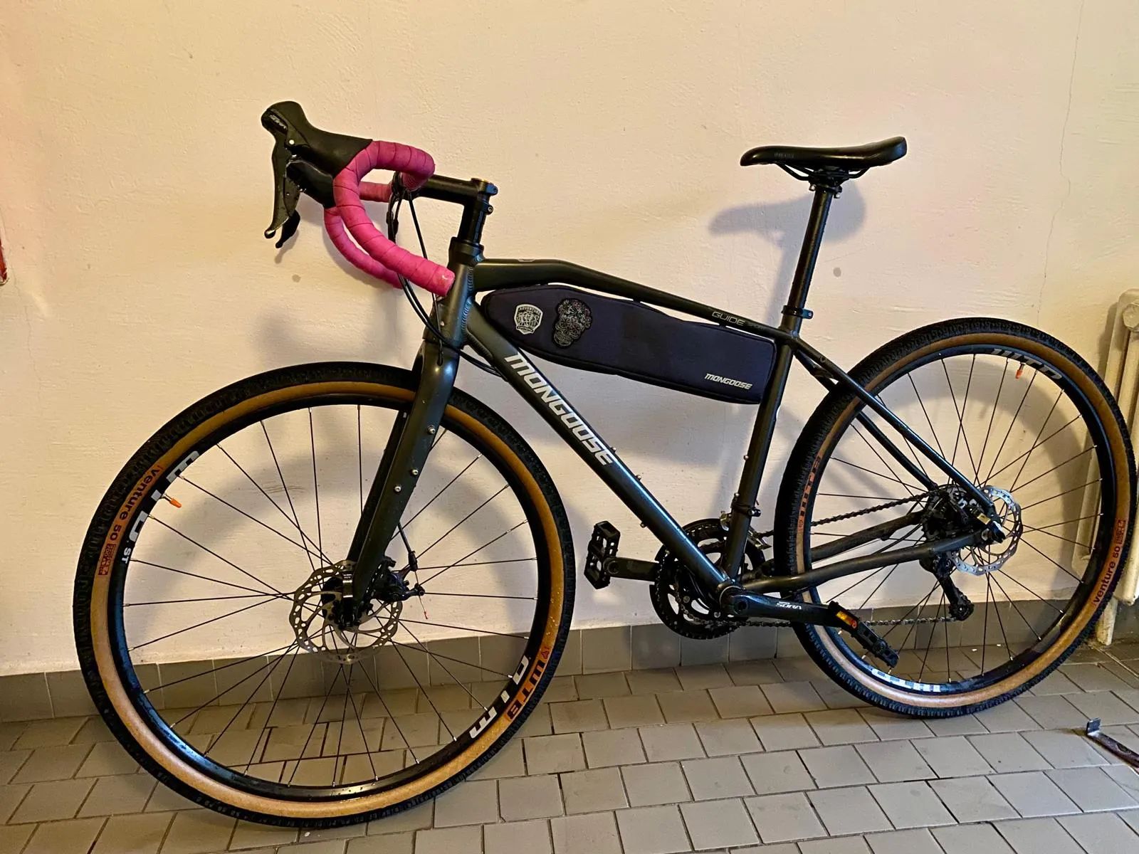 Rám: aluminum, 700c adventure geometry, internal cable routing, 9 mm x 142 mm dropout Vidlice: Mongoose, 700c, aluminum steerer, 12 mm x 100 mm Přesmykač: Shimano Sora FD-R3000, band clamp Přehazovačka: Shimano Sora RD-R3000 Řazení: Shimano Sora ST-R3000, 2 x 9 Ráfky: WTB ST-19, aluminum double wall, 19 mm ID, 32H, tubeless compatible, Brzdy: Promax DSK-330 flat mount, mechanical, aluminum, 160 mm rotor Řídítka: Xposure, aluminum, 450 mm - 510 mm width, 31.8 mm clamp Představec: Xposure diecast, threadless, 90 mm, 7°, 31.8 mm clamp Sedlovka: Xposure, aluminum, 350 mm, zero offset, 31.6 mm Extra: integrovaná rámová brašna