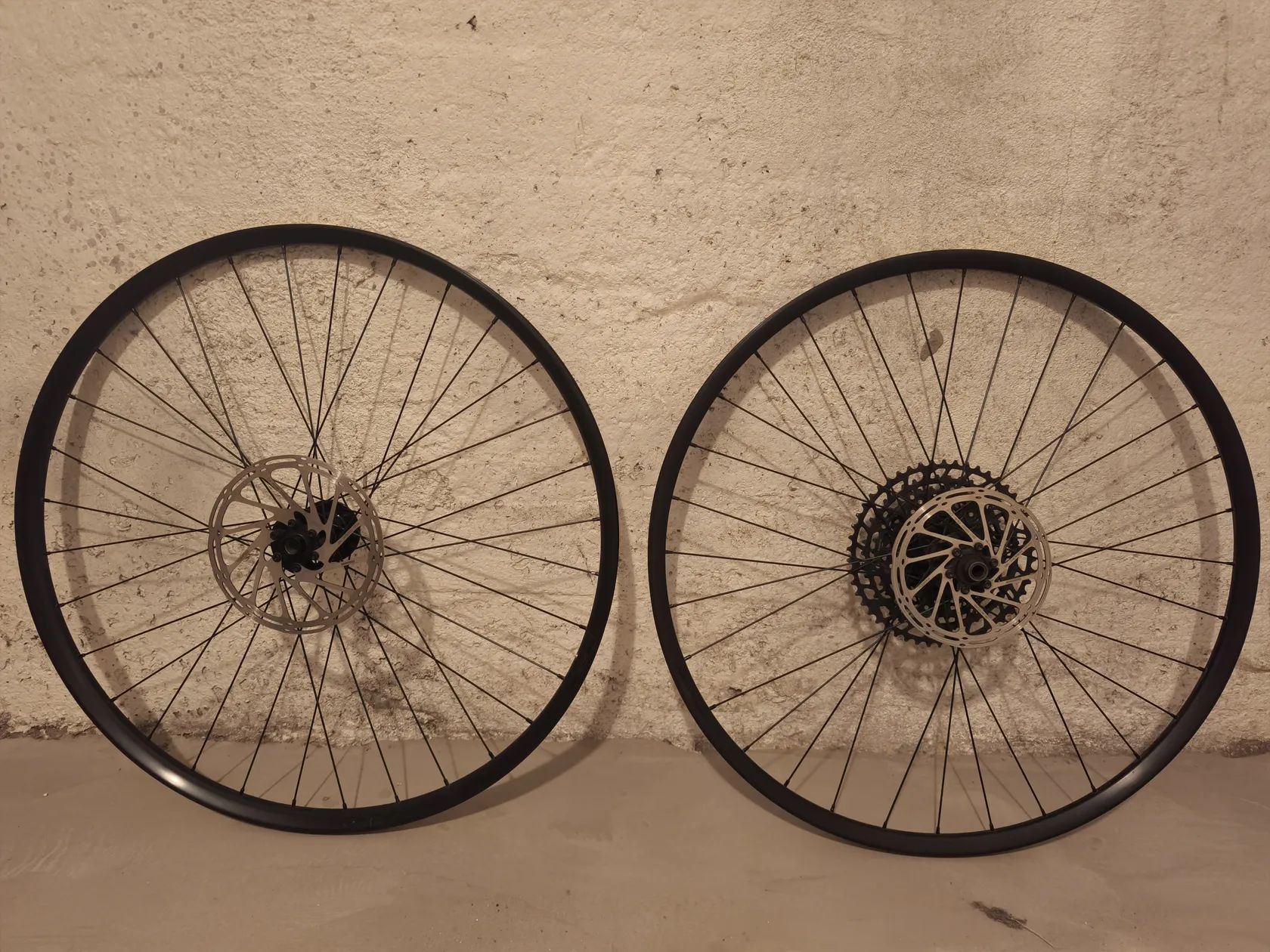 Prodám zapletená kola s ráfky Jalco a náboji Formula. Kola byla ježděná pouze 1 sezónu, jsou plně funkční a v dobrém stavu. Součástí je také kazeta SRAM NX a brzdové kotouče SRAM Centerline.