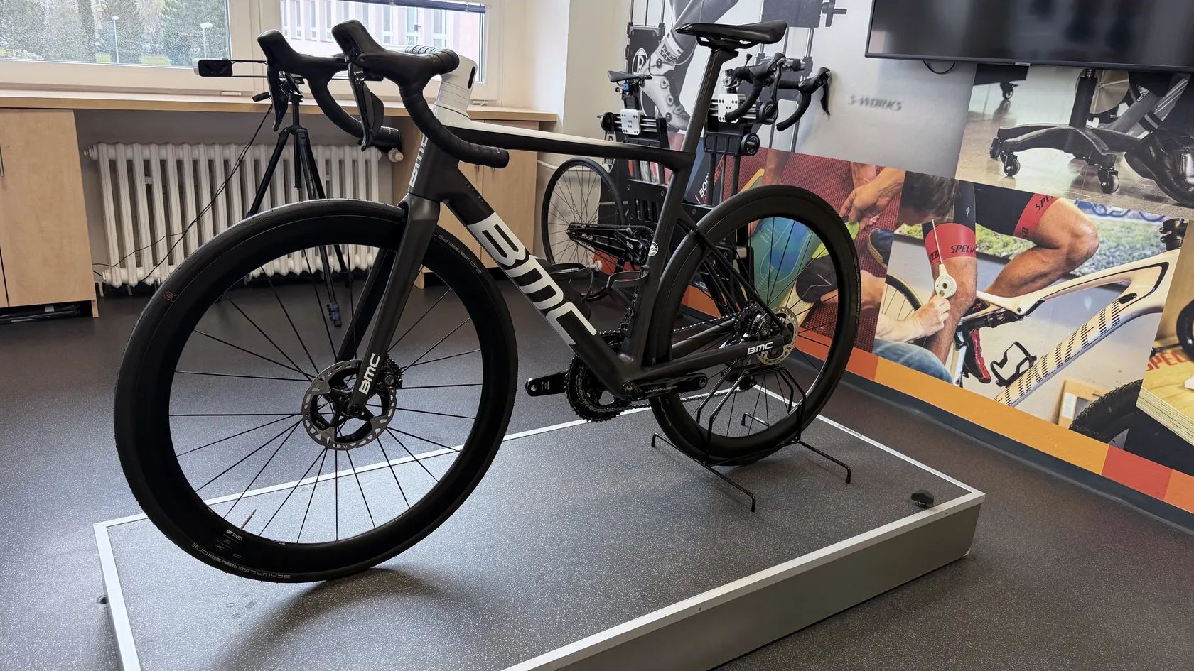 🛠️ Specifikace: • 52/36 + 11–30 (kopce i rychlé roviny) • Pláště 26–28 mm (rychlé a pohodlné) • Dura-Ace Disc (brzdí za každého počasí) • Karbonový kokpit, integrované bovdeny