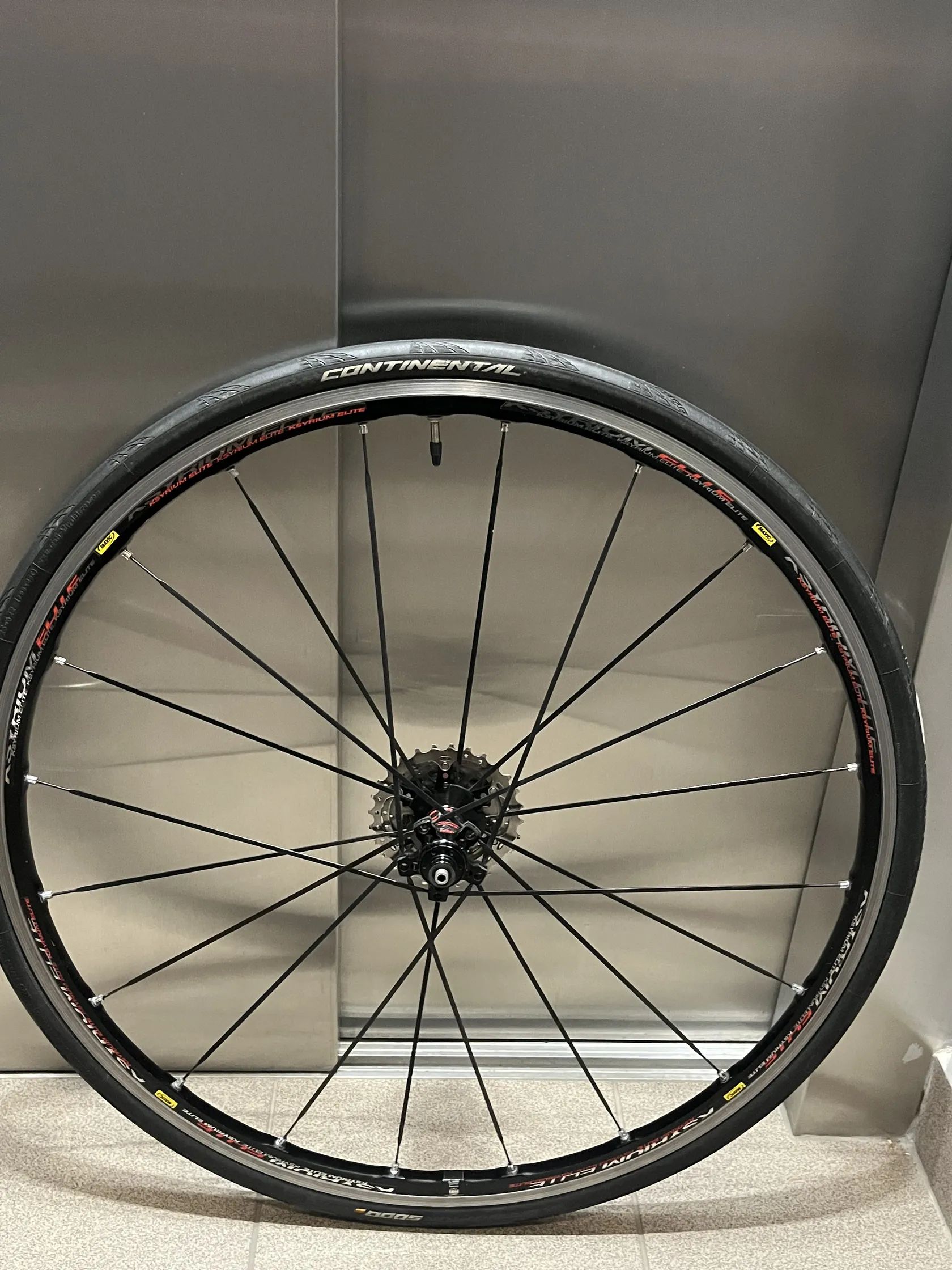 Prodám špičkové zadní kolo Mavic Ksyrium Elite. Extrémně lehké-váha celého nastrojeného kompletu (kolo, kazeta, plášť, duše) je pouhých 1450 g, samotný ráfek váží 860g. Plochý aero výplet, velmi tuhé, nádherný zvuk. Osazeno zánovní kazetou 11s Shimano 105 a top pláštěm Continental Grand Prix 5000. Mohu přehodit i na 10s dura-ace kazetu. Brzdná plocha ok, točí se krásně, neháže. Měl jsem ho připravené jako záložní, ale koupil jsem karbonové.