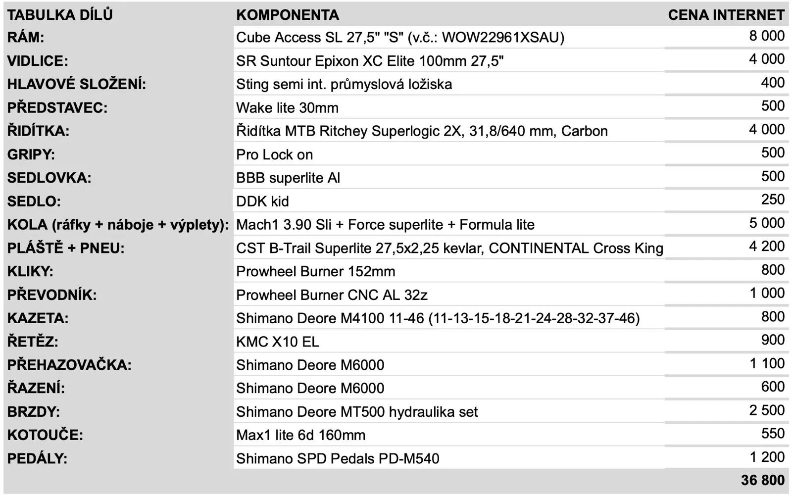 Prodávám custom stavbu MTB kola. Dcera na tomhle kole 2 sezóny lítala po závodech jak střela – a protože rosteme (nejen výkonnostně 😅), pořizujeme nové kolo. Tohle si zaslouží další parádní misi! Třeba u vás. ✅ Cube Access SL 27,5” – velikost S (snížená sedlovka – super pro děti) ✅ Superlite ALU – pevné, lehké, komplet váha pod 12 kg ✅ Kola 27,5” – ideální pro rychlost i obratnost ✅ Pravidelný servis minimálně 1× měsíčně ✅ Jaro 2025 – nový zadní náboj, ořech, převodník a řetěz ✅ Kolo je v perfektním závodním stavu, zakonzervované na zimu ✅ Náhradní pláště Continental Cross King do těžšího terénu k tomu ✅ Na rámu aplikovaná ochranná folie ✅ Oděrky? Pár kosmetických – znám je jen já, vy si jich nevšimnete 😉 👉 Ideální pro výšku cca 130–160 cm