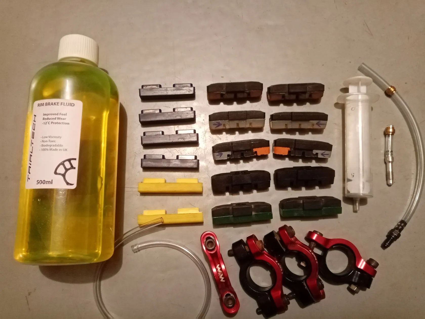 Prodám kolo ve velmi pěkném stavu, jeté pouze hobby, sloužilo jako druhé kolo. Proti standardu několik vylepšení. Nové brzdové páky Trialtech Sport v ceně téměř 4 tisíce, závodní brzdové objímky pro lepší nastavení brzd, hliníkové rámečky brzdových čelistí, brzdová podkova. Nové pásky v ráfcích, téměř nové pneumatiky. Ke kolu přidám příslušenství na servis brzd (foto). O kolo bylo pečováno a je bez investic.