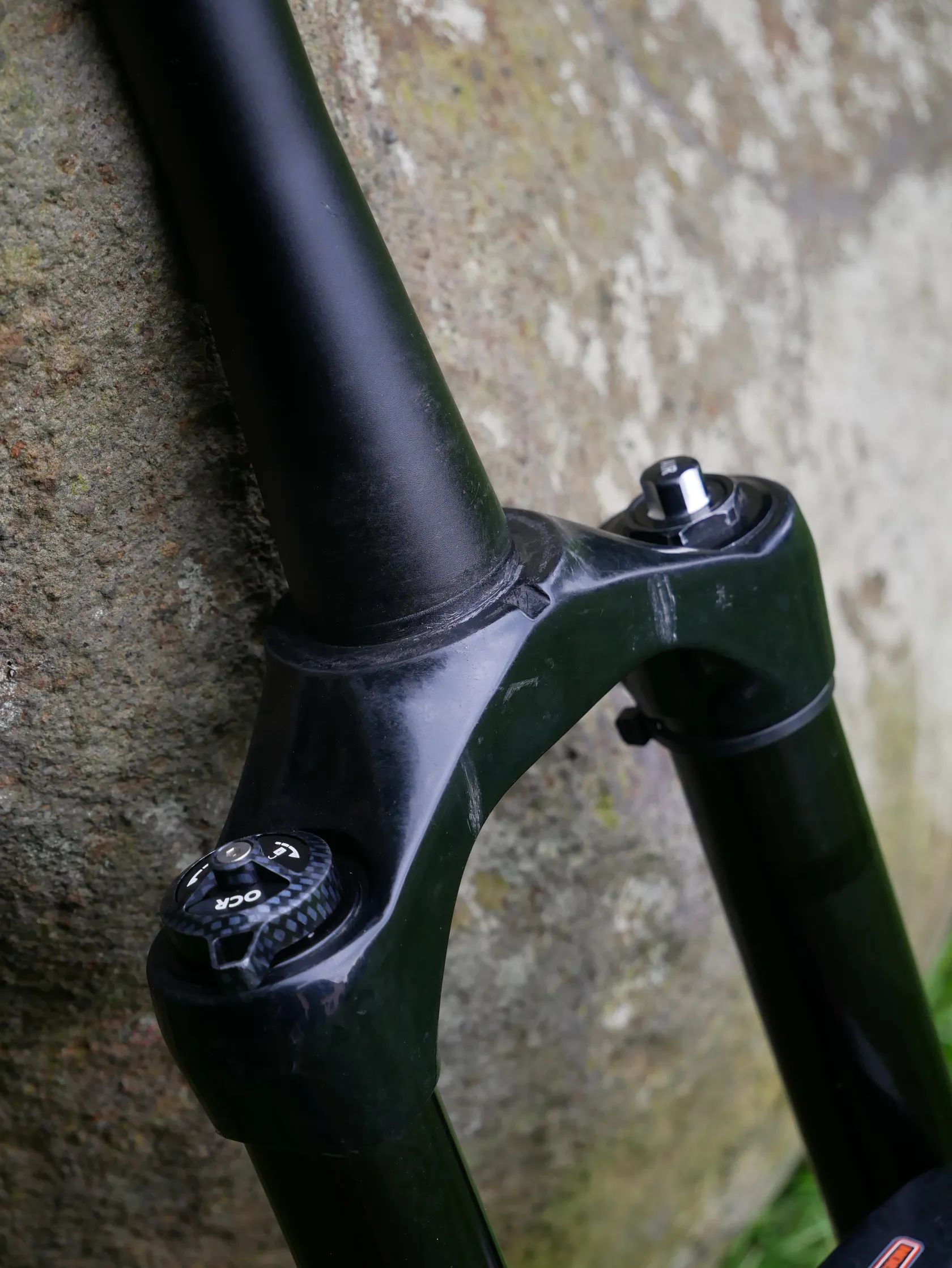 Vidlice byla nedávno servisovaná, od té doby nejetá. Nefunguje zamykání vidlice. Odskok se musí štelovat 2,5mm imbusem. Vnitřní nohy nenesou známky poškození. 150mm zdvih pro 27,5 kola