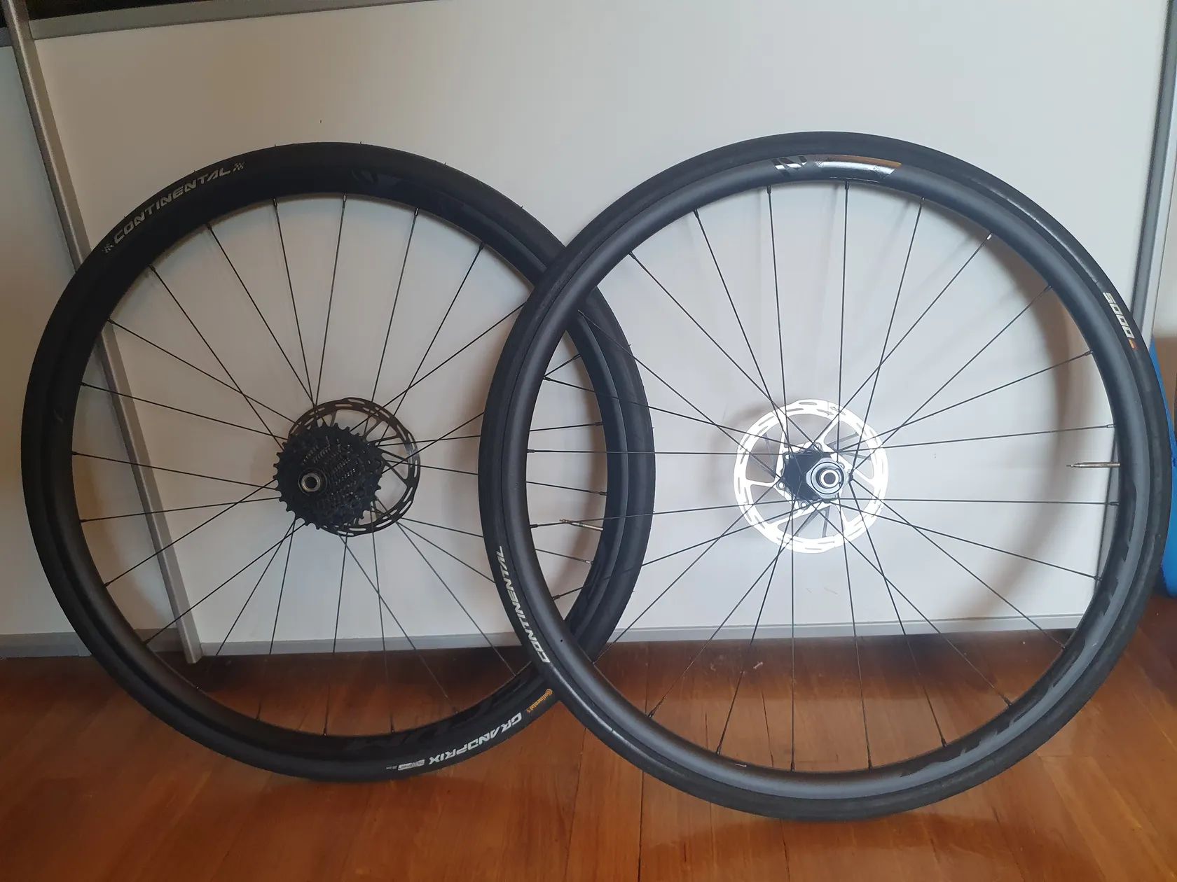 Zapletená kola Fulcrum DB 500 xdr, jako nová , najeto 300km. Kazeta SRAM FORCE (12spd) 10-28, také téměř neježděná, kotouče sram centerline (jeté ale pořád mají většinu před sebou). Včetně plášťů Continental grand prix(jeden nový, jeden jetý). Měl jsem připravené jako sadu na ježdění na válcích, ale nevyužiju ji.