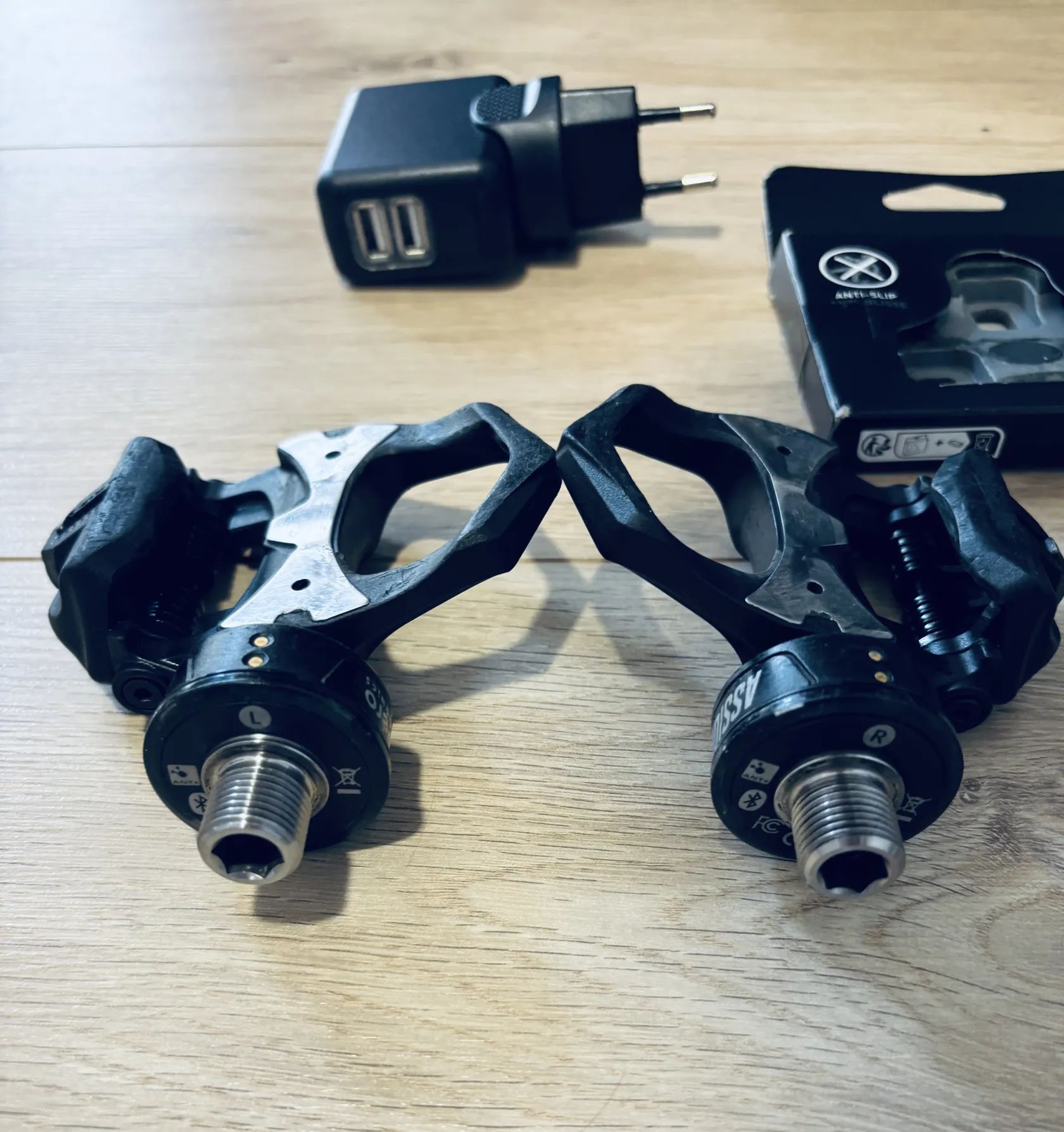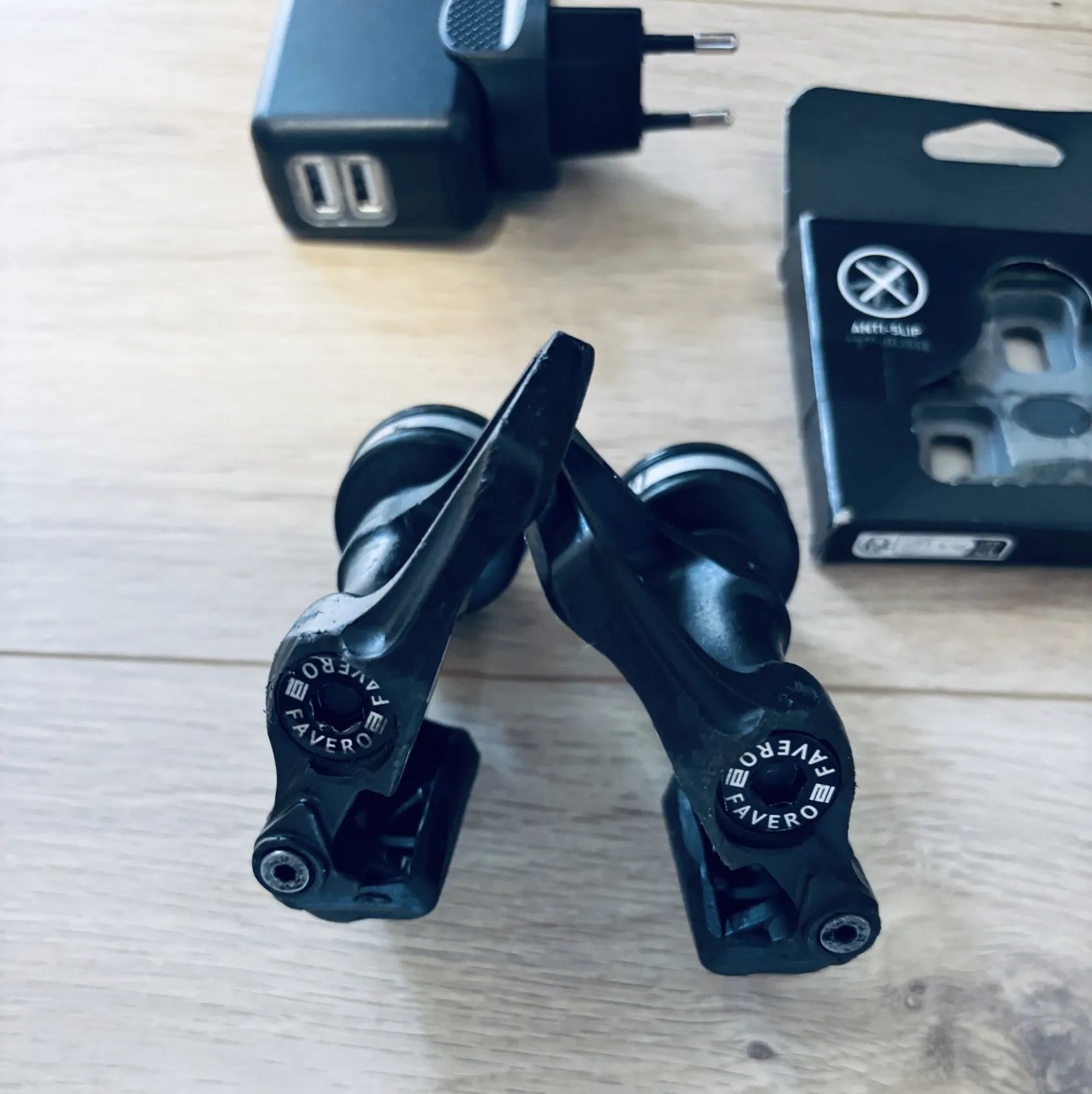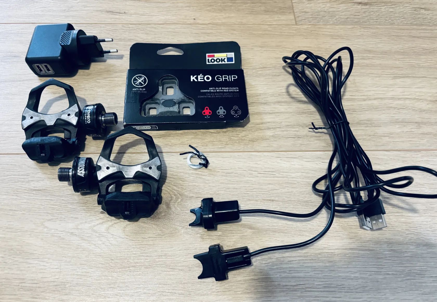 Používané jednu sezónu. 100% stav, viz. foto. Včetně originál šedých kufrů Look (včetně šroubů), nabíječky, síťového adaptéru a podložek mezi pedály a kliky.