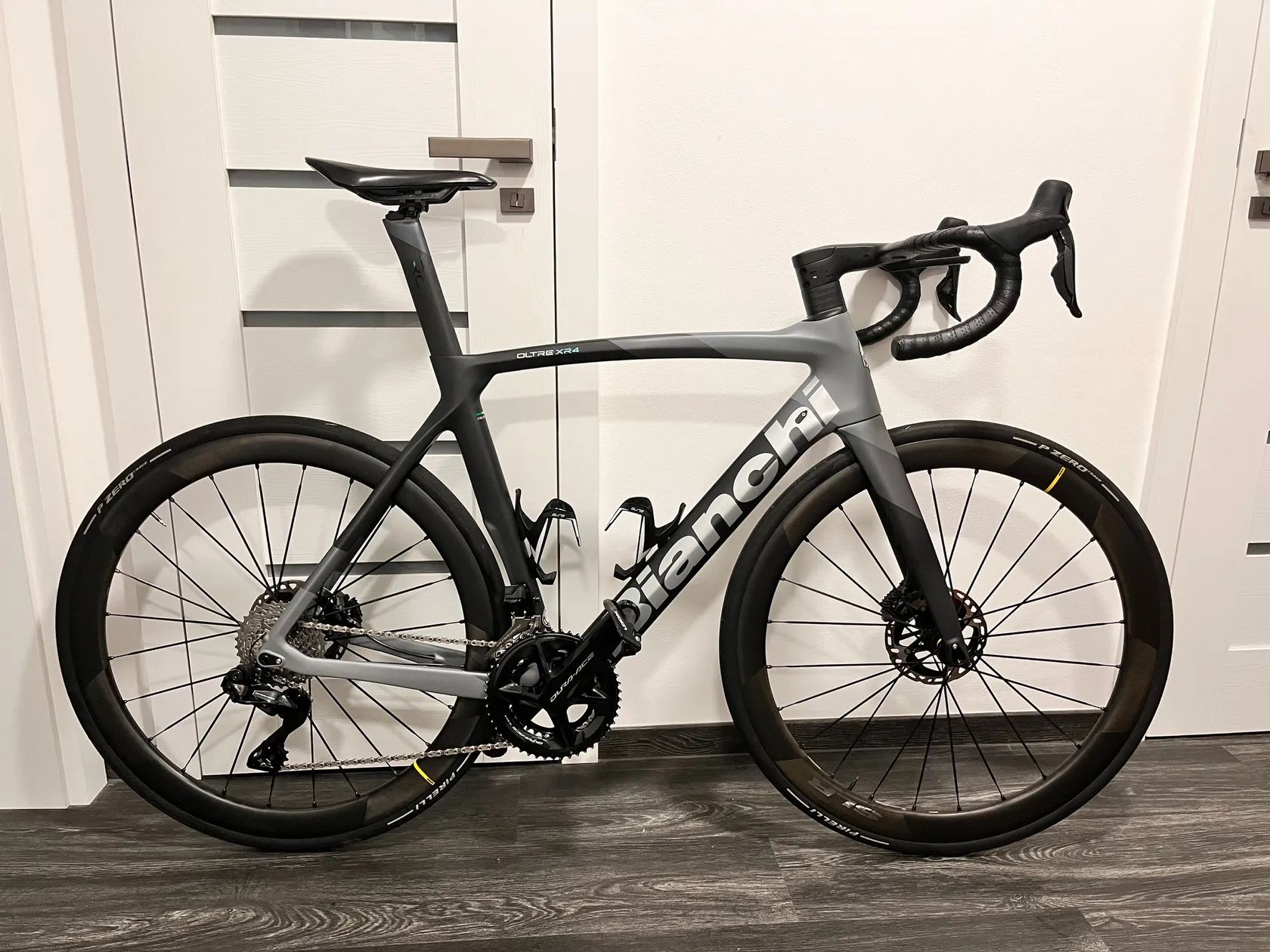 Prodám Bianchi Oltre XR4, velikost 57, sada Dura Ace 9200, kola Mavic Cosmic SLR 45, velmi málo jeté - cca 3000km, koupené jako nové 11/2022, krom malého škrábance (při mytí) stav nového kola.