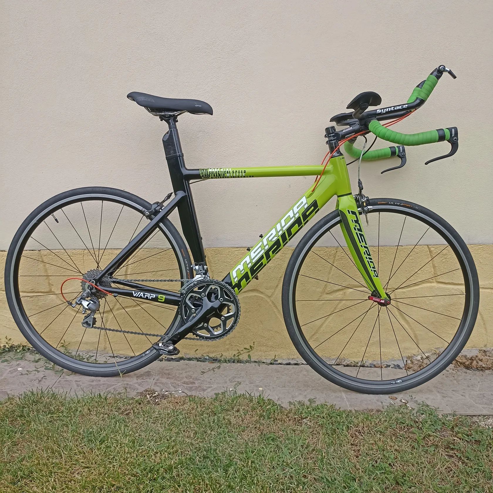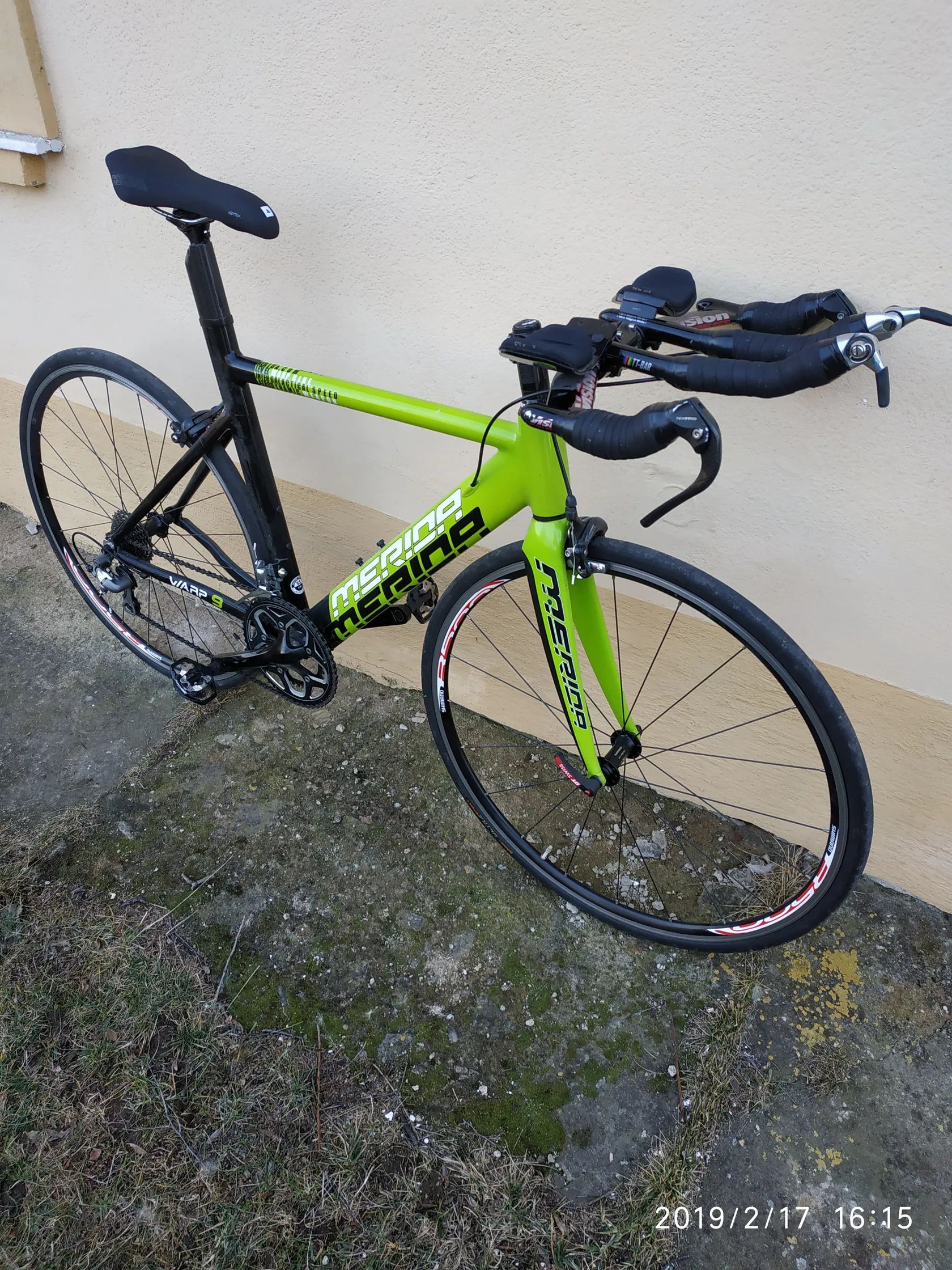 Merida Warp je triatlonové / časovkářské kolo se sportovní geometrií pro jízdu v aeropozici