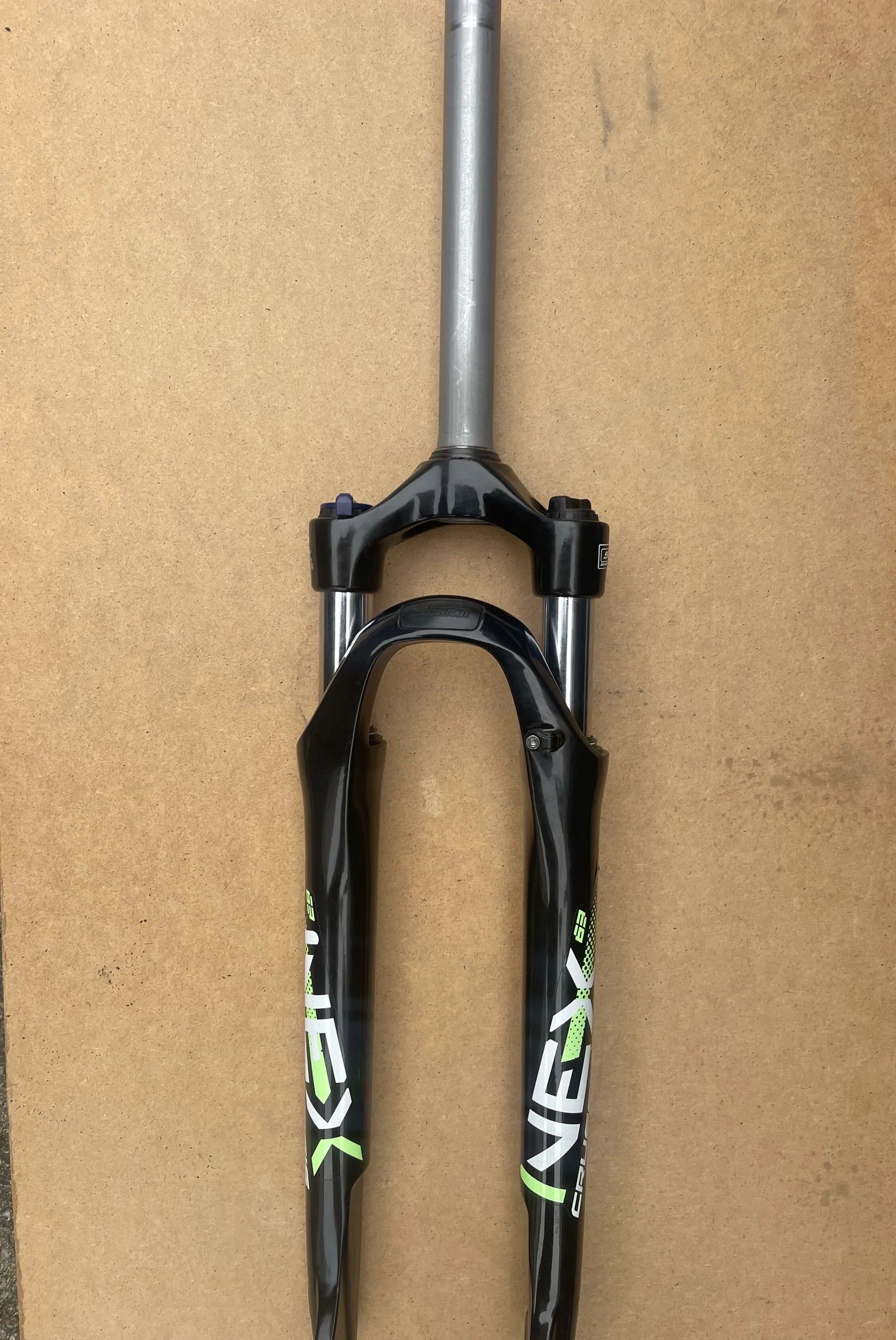 Pružinová vidlice SUNTOUR NEX HLO DS 700c, zdvih 63 mm, uzamykatelná vidlice na kotoučové brzdy .Sundaná z nového kola Crussis E-cross. Stav nové vidlice.
