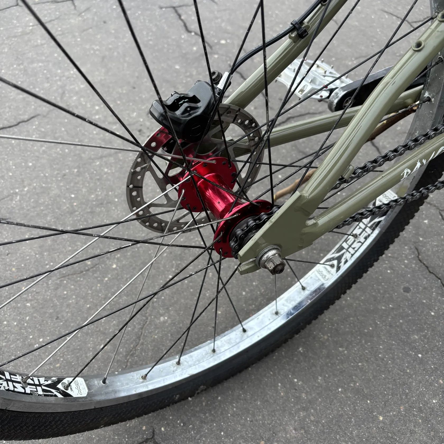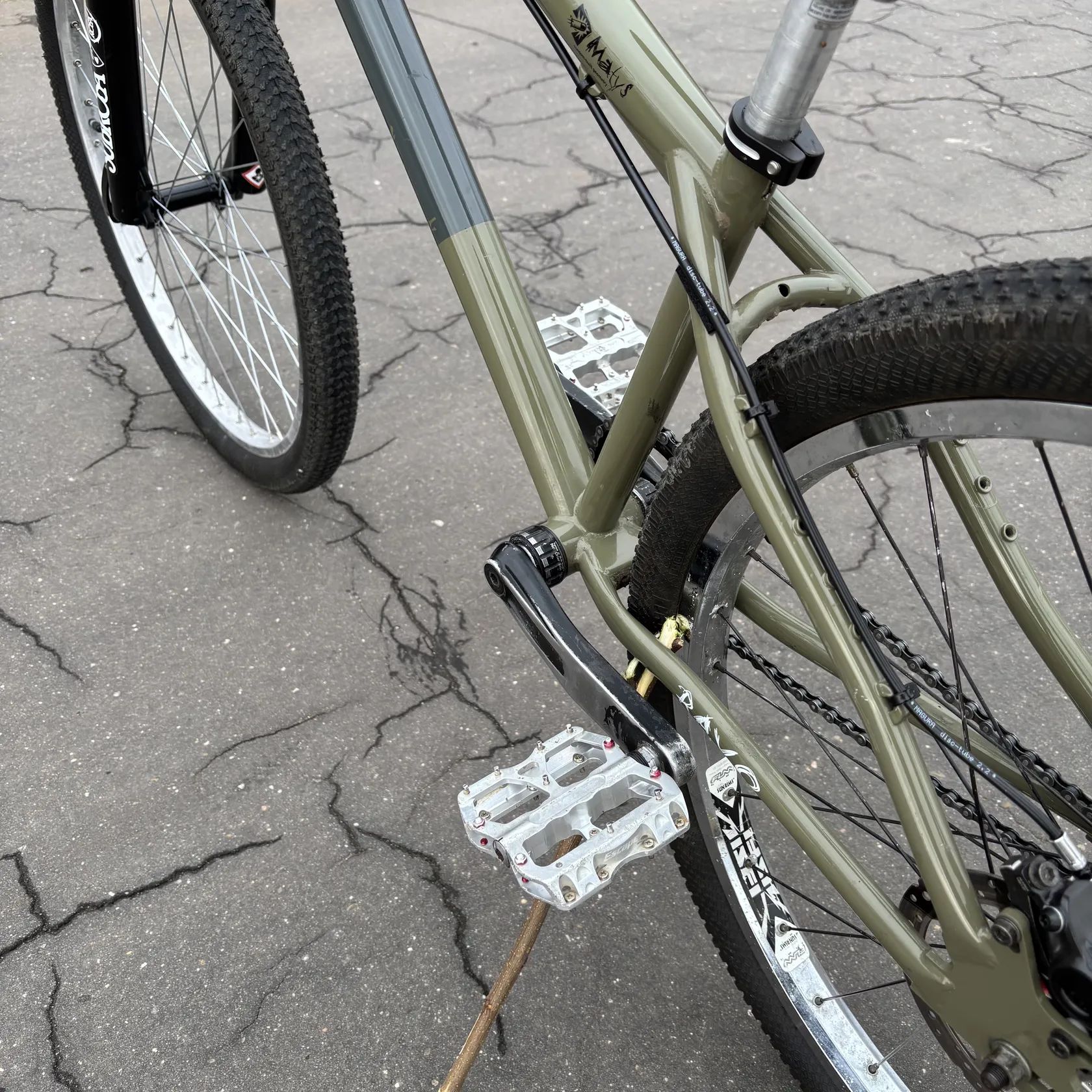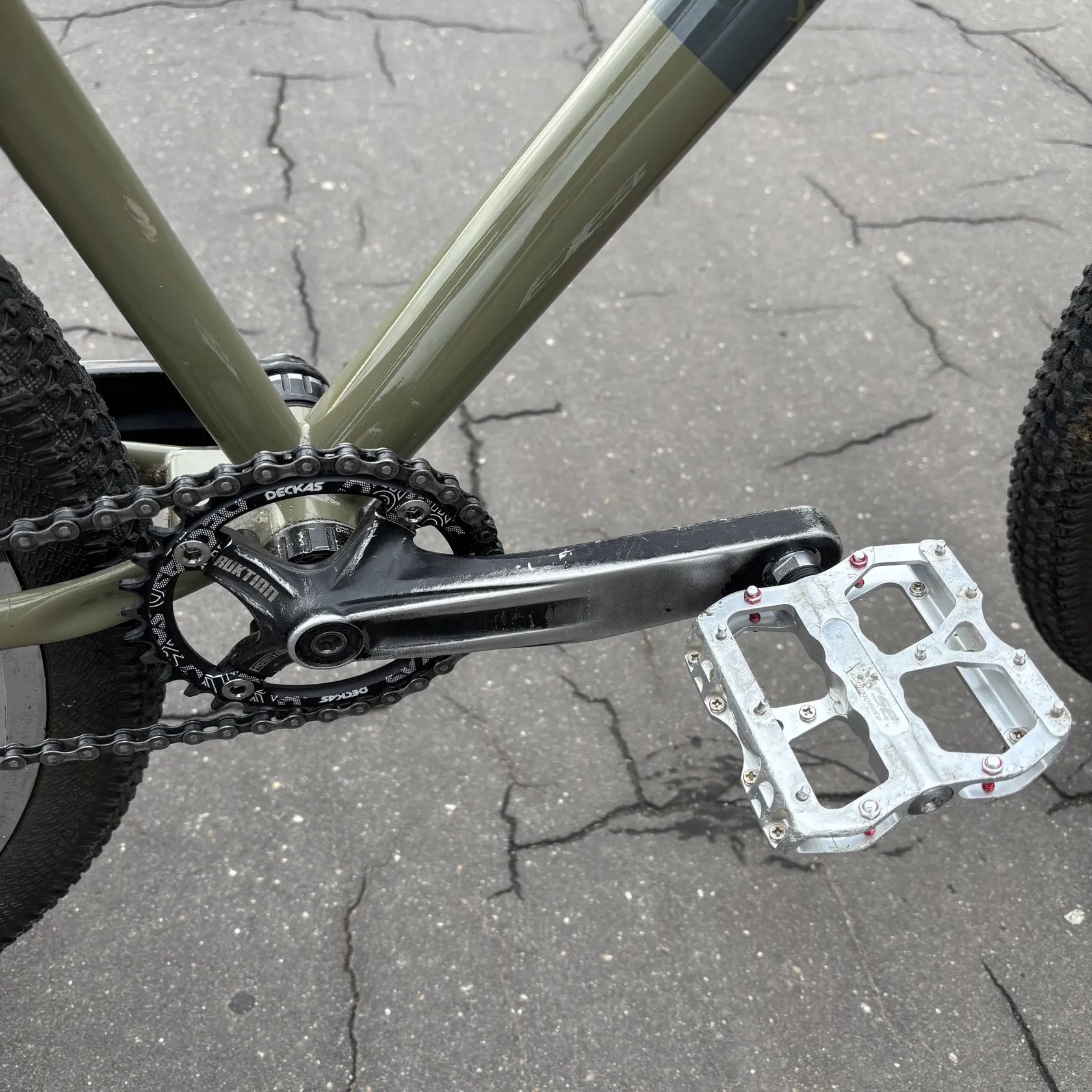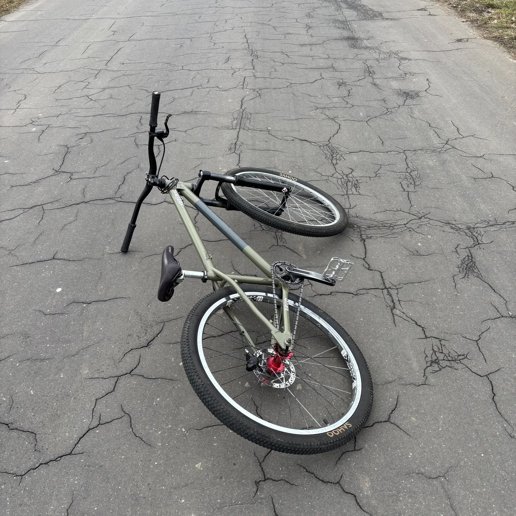 Nově poskládaný - vše promazané, připraveno k jízdě. Na kole je momentálně převod 32/10. Tzn. těžlý převod - na skoky nebo pumptrack to de, ale na přejezdy se to moc nehodí.