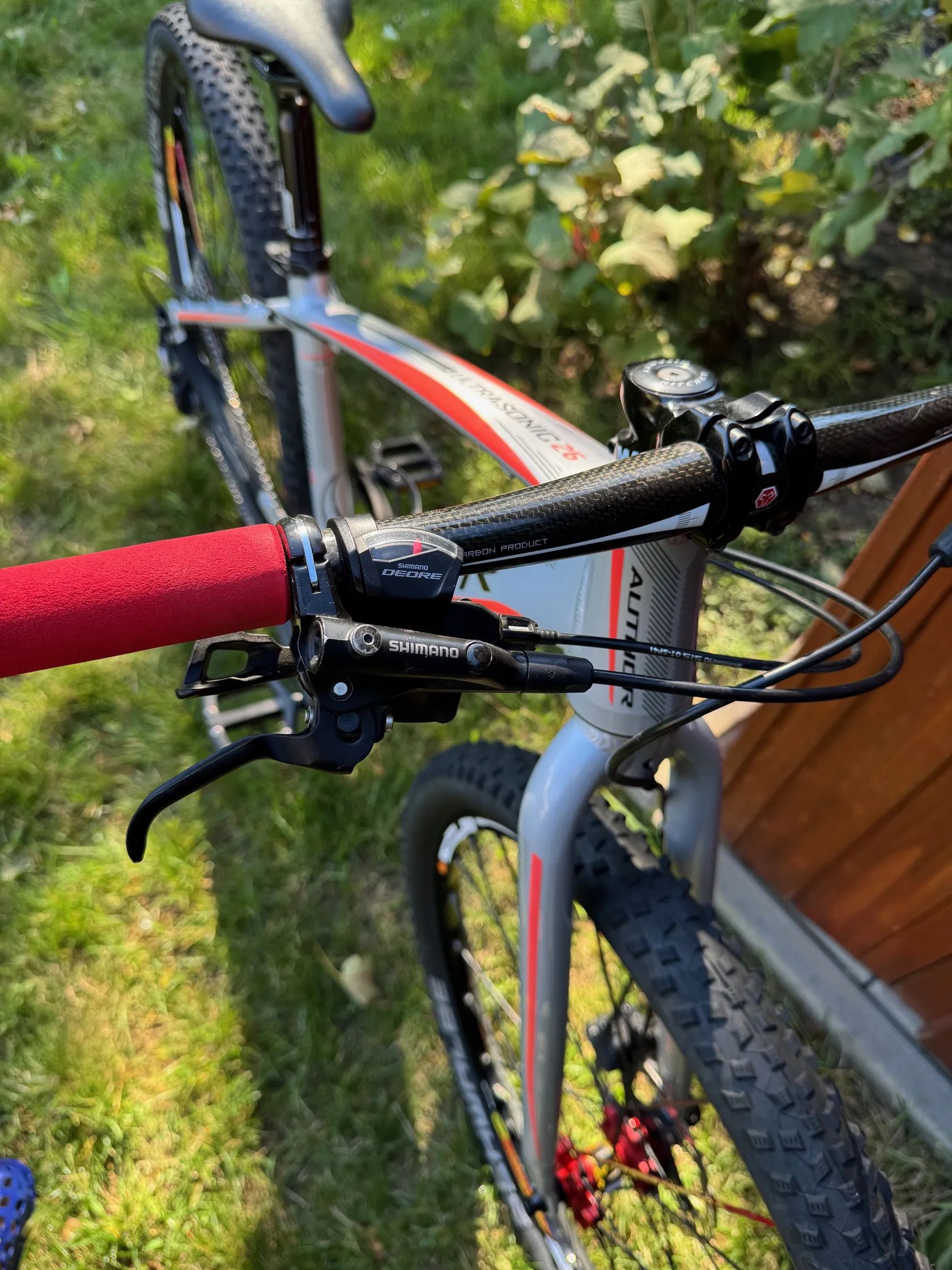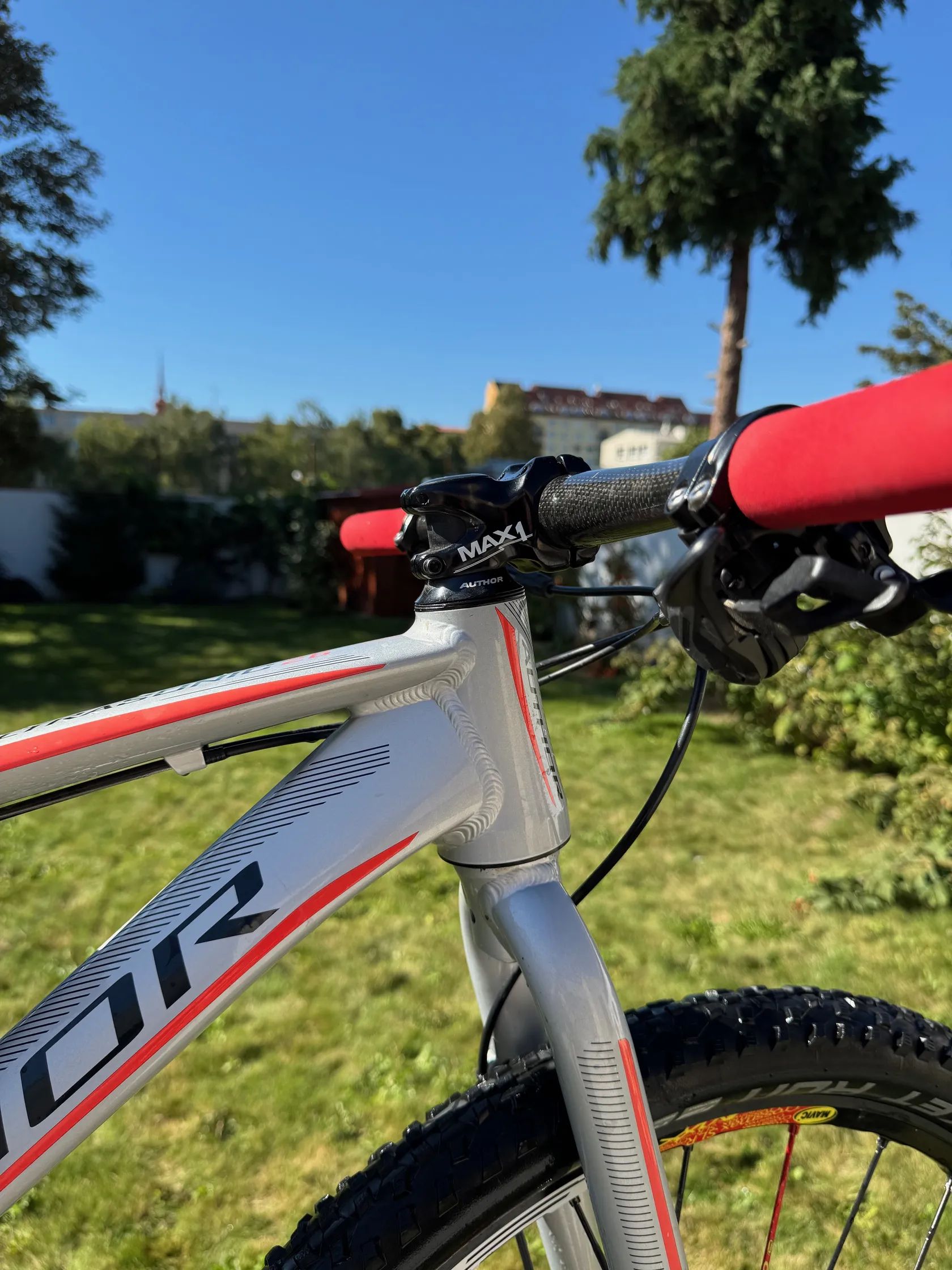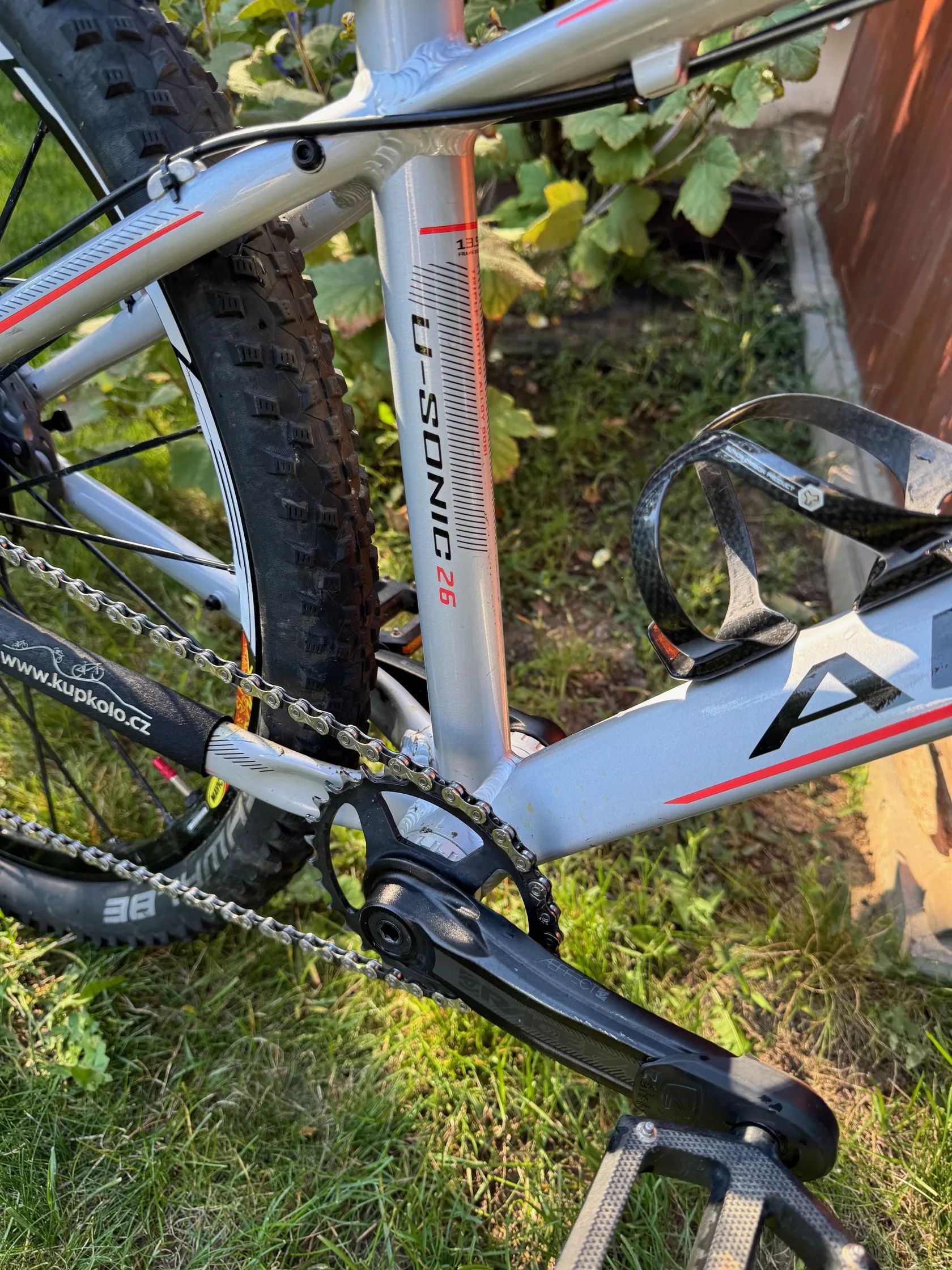 Prodám dětské horské kolo AUTHOR Ultrasonic 26. Jedná se o individuální stavbu pro dcerku. Technická specifikace Rám: Ultrasonic Triple Butted Alloy 6061 vel. 13,5 Vidlice: Ultrasonic Al Zapletená kola: MAVIC Cosmic SLR Kotoučové brzdy: SH MT 501 Brzdové kotouče: SH XT SM-RT86 Ice-Tech 160 /160 mm, 6 děr Kliky: RACE FACE Aeffect 155 mm (servisně zkracováno) Převodník: RACE FACE 30 T Krytky klik: ZÉFAL Pedály: VP – 227 (nebo – 600,- Kč plastové) Řazení: SH Deore 10 Sp. Přehazovačka: SH Deore GS 10 Sp. Kazeta: SH Deore 11-42, 10 Sp. Řetěz: SH + rychlospojka Středové složení: SH XT Hlavové složení: AUTHOR ŘÍDÍTKA: AUTHOR Carbon, 600 x 31,8 Gripy: ESI Red 130 mm Představec: MAX 1, 45 mm Sedlovka: FSA V-Drive, 31,6 / 350mm Sedlo: VELO MX, 125 x 250 mm Pláště: Schwalbe Rocken Ron Performance TLR Addix Duše: Bezduše Košík na bidon: AUTHOR Carbon