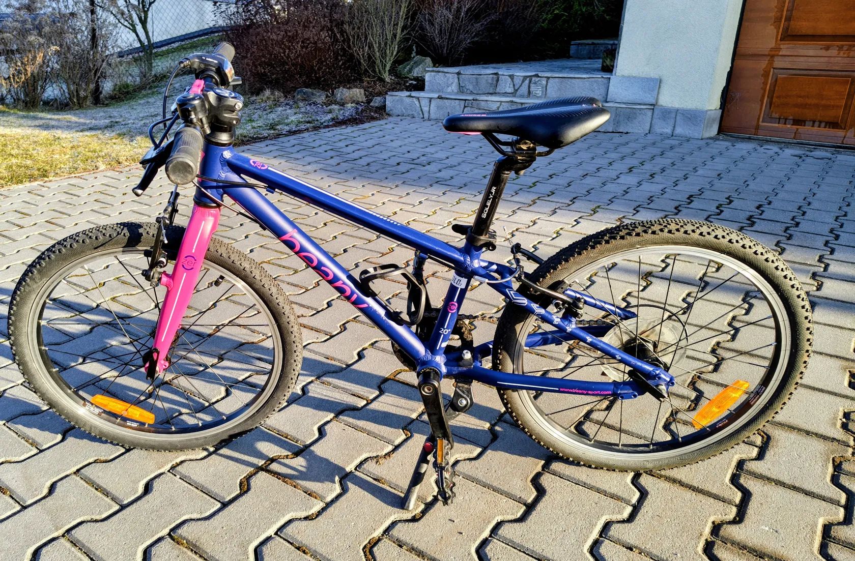 Prodám ultralehké dětské kolo Beany Zero 20, dobrý stav, běžné známky používání. Dle výrobce pro dítě výšky 105-125cm. Dovybaveno zvonkem, košíkem na láhev, stojánkem a dále záměna řazení za gripshift (menší děti podle mé zkušenosti nemají dost síly v prstech, aby páčkami cvakaly). Původní řazení k dispozici. Pouze osobní odběr