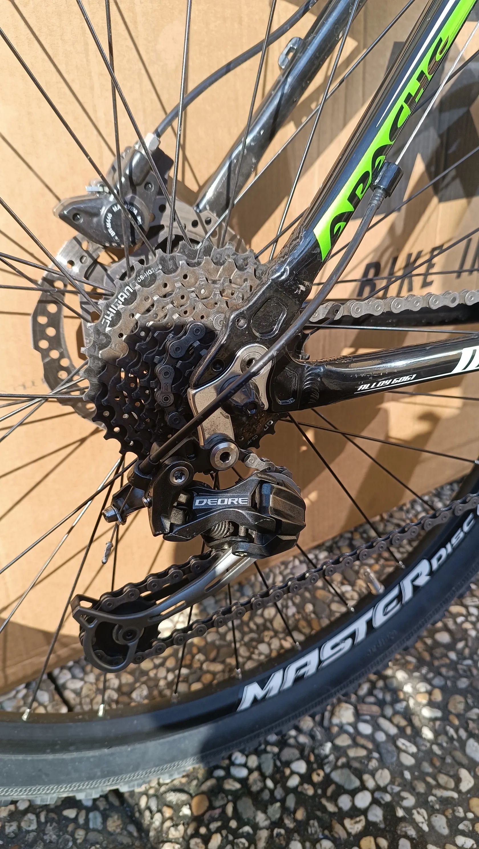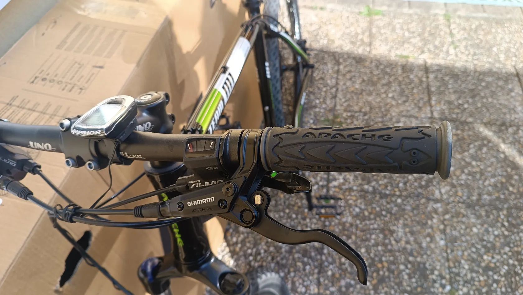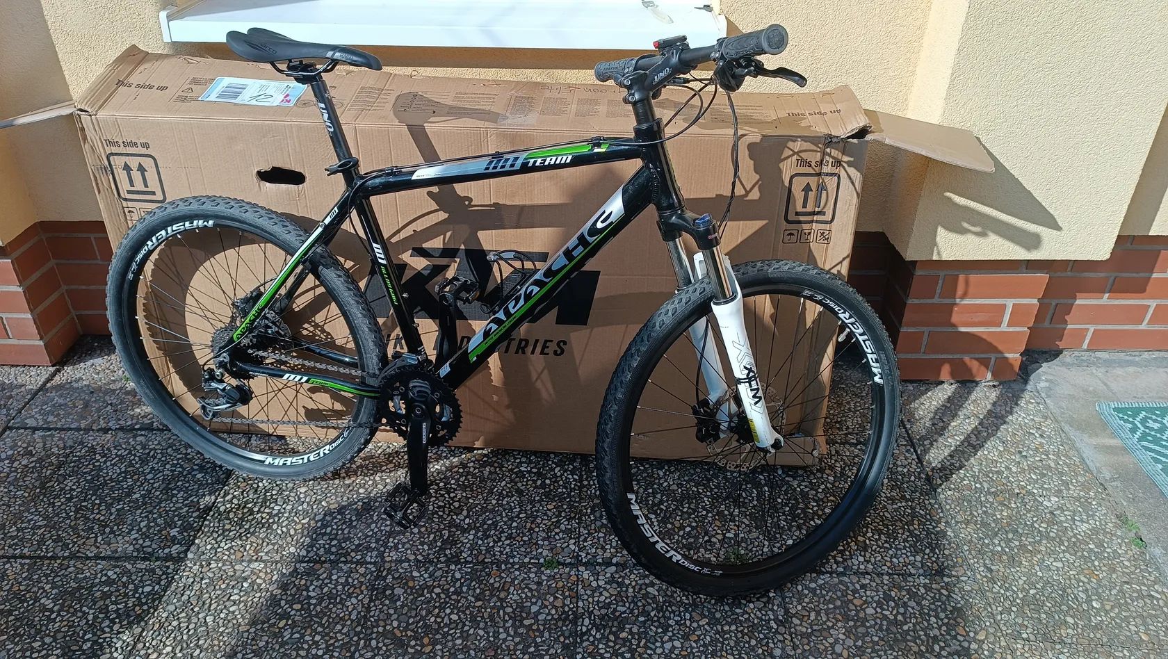 Prodám horské kolo Apache Team, výbava viz foto, rám 19" hliník, vidlice Suntour, Deore, Alivio. Převody, brzdy jako nové, pláště 75%. Bez investic, menší kosmetické vady. Nutno vidět, vyzkoušet. Nejlépe osobní jednání.