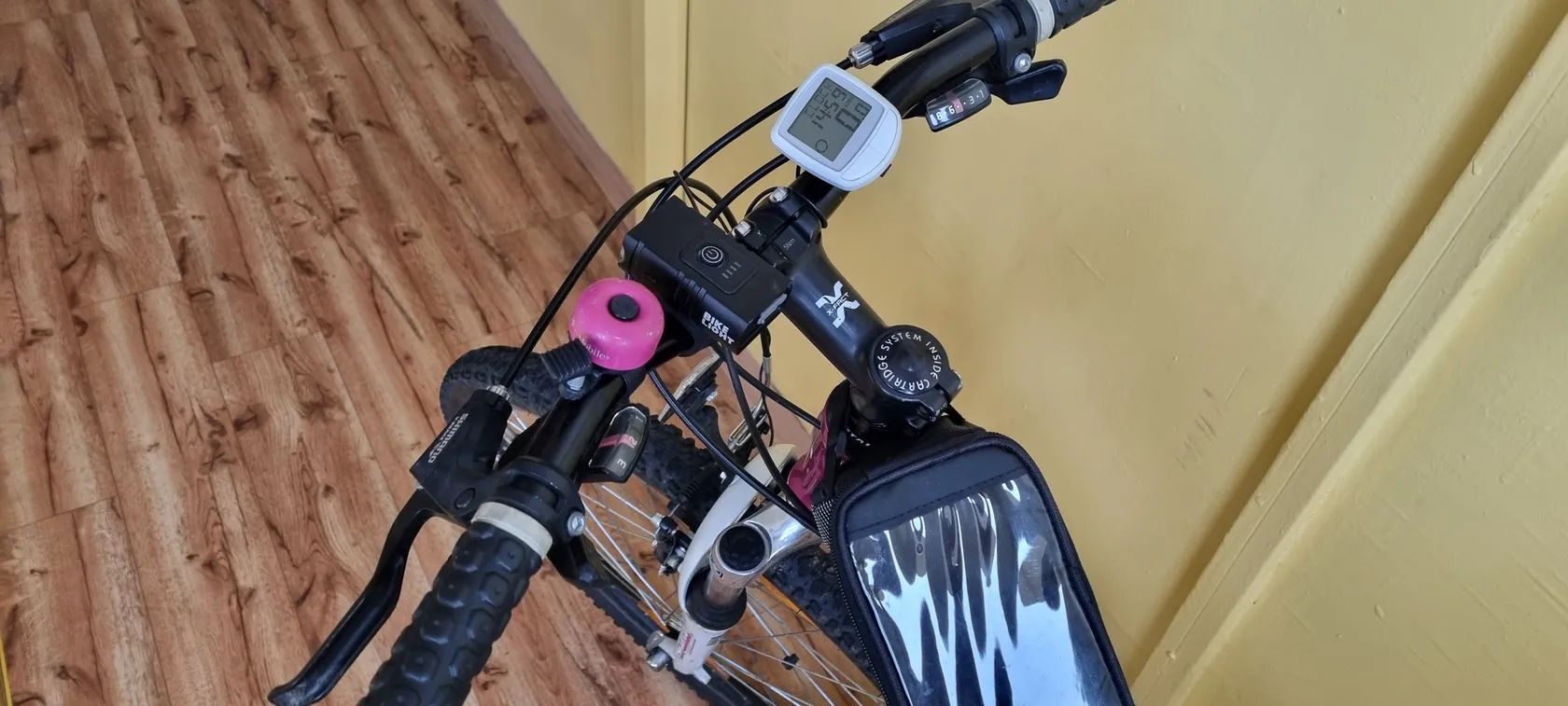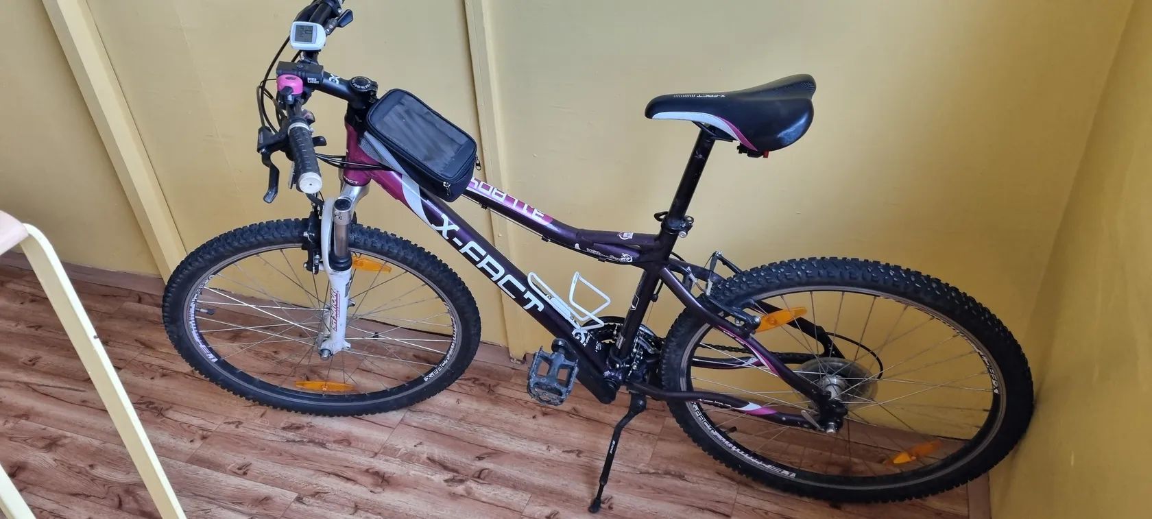 Vybaveno držákem na láhev, stojánkem, tachometrem, (brašnu a osvětlení si ponechávám).