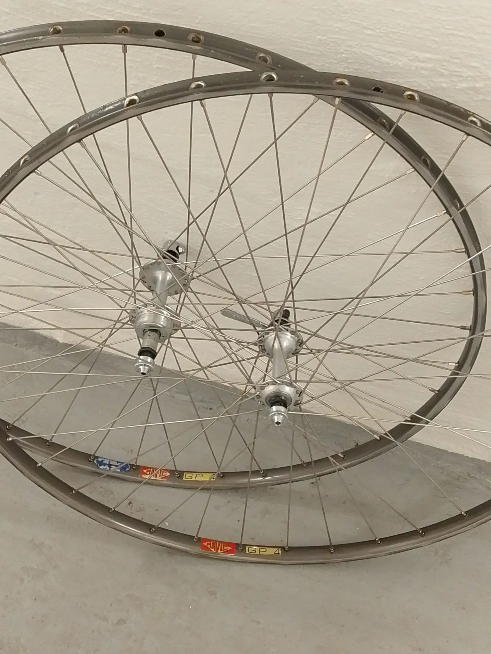 Mám tady na prodej pěkná retro zapletená kola. Ráfky Mavic GP4 náboje Campagnolo. Rovná nenaražená. Na galusky. Parádní stav!!!