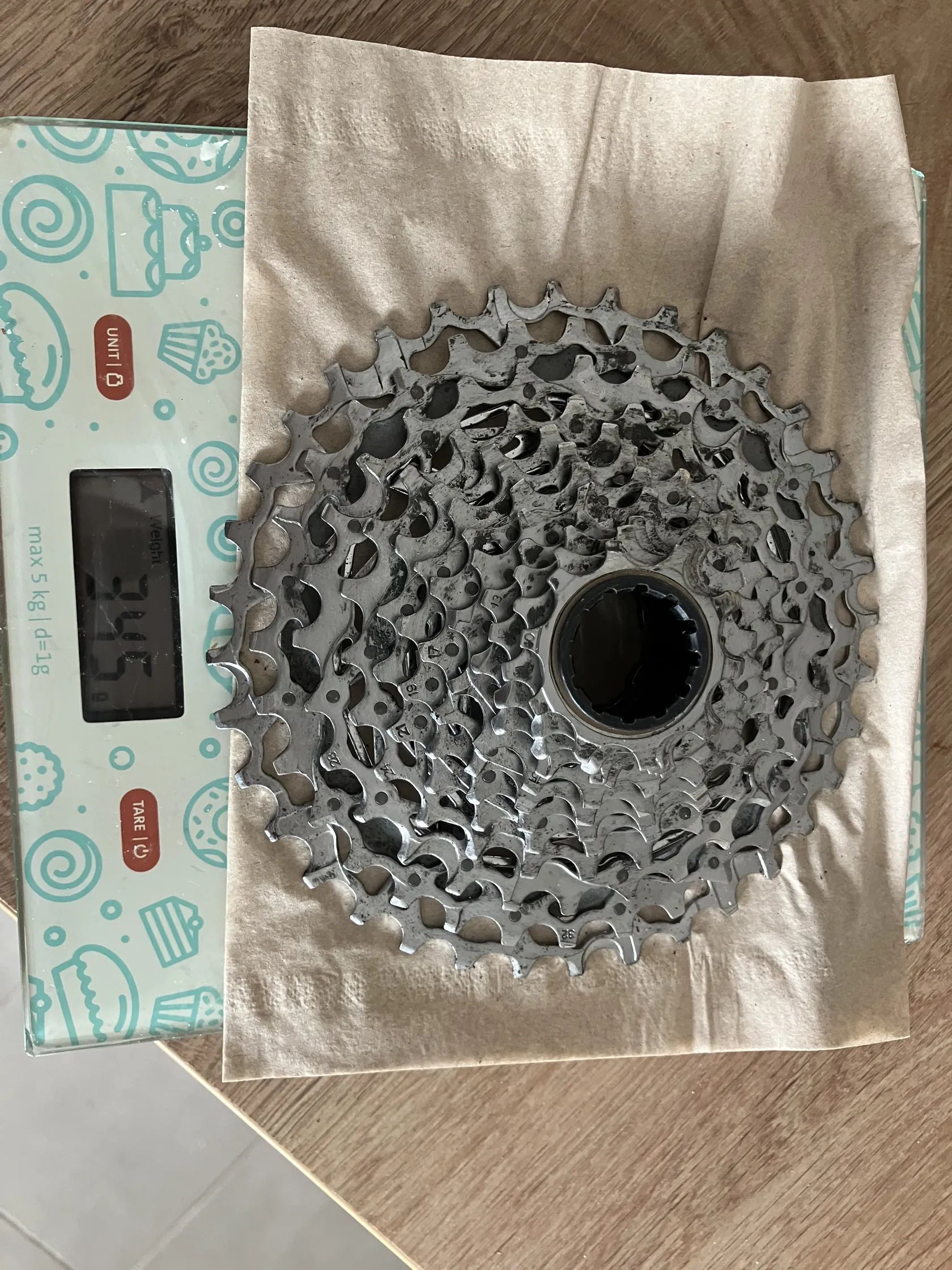 Kompatibilní ořech: XDR Převody: 10-36T: 10-11-12-13-15-17-19-21-24-28-32-36 Hmotnost: 345 g (viz foto na kuchyňské váze) Najeto cca 500 km, bez výraznějších známek opotřebení
