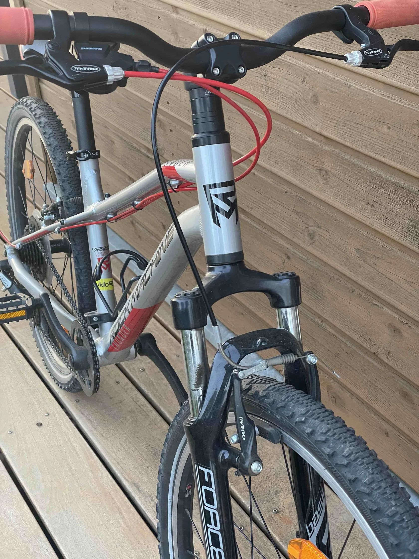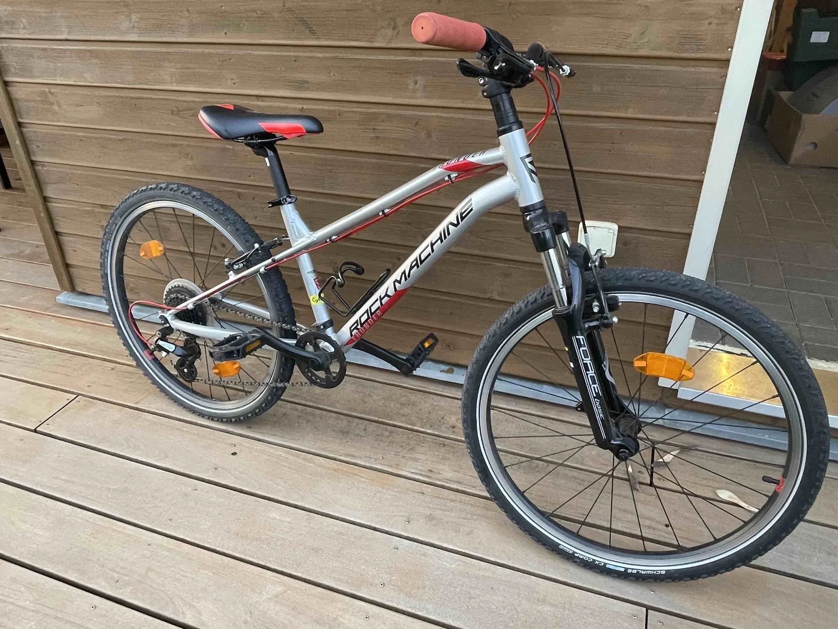 Jedná se o dětské kolo zn. RockMachine. Rám hliník. Super stav - pravidelně servisované. Přední vidlice odpružena. Shimano Altus přehazovačka 1x8, rafkove brzdy V-brake Tektro, pláště Schwalbe. Barevně jak pro holky, tak pro kluky ve věku cca 7-10let v závislosti na vzrůstu.