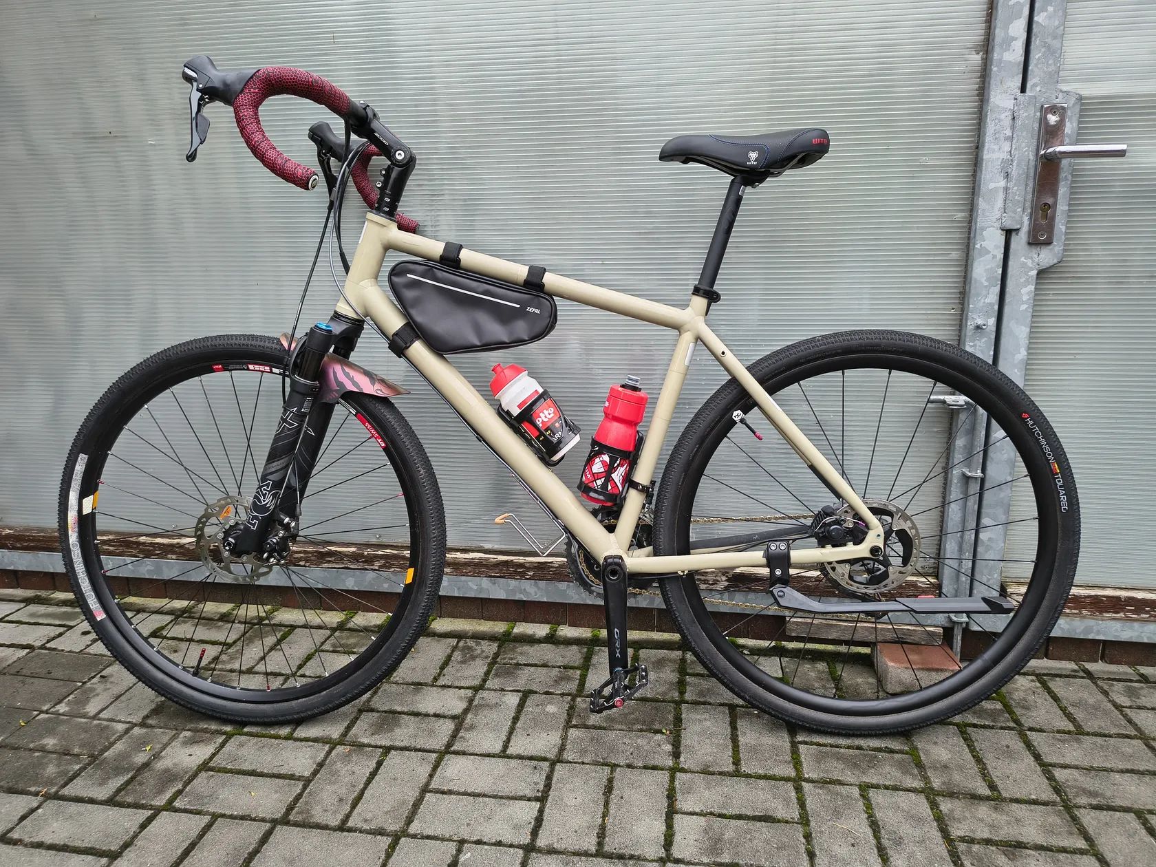 Nyní velmi komfortní posed, zvýšená řidítka, dlouhý krk vidlice + stavitelný představec. Nehrozí bolest zad ani na dlouhé cestě. Lze samozřejmě výměnou predstavce přeměnit na "žiletku".