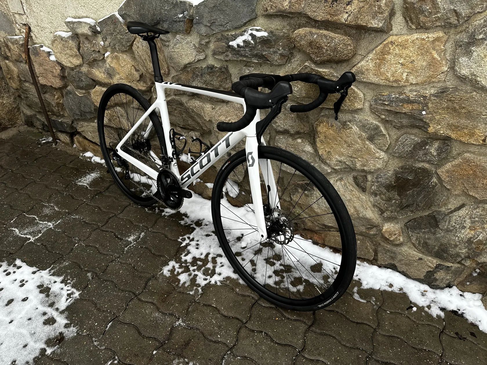 Prodám karbonové silniční kolo Scott Addict RC 40 ve velikosti 56/L. Na foto nastaveno na postavu 182cm. Kompletně integrovaná kabeláž. Sada Shimano 105 2x11. Kliky Shimano 105 172.5mm 52x36 Kazeta Shimano 105 11-30 Kola Syncros RP2.0 Disc Pláště Continental Gran Prix 5000 28mm Představec syncros 120mm řídítka syncros 420mm Kolo je seřízeno a je nový řetěz a středové složení.