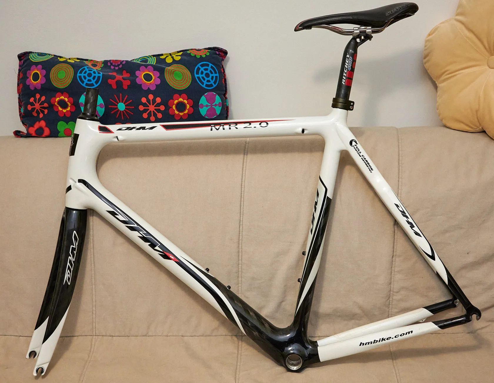 Včetně hlavového složení Ritchey, sedlovky Ritchey a sedla Selle Italia SLR 180g. Hmotnost rám + vidle cca 1600g (váženo se vším 2198g , z toho sedlo je 180g, ostatní jsem odečetl odhadem). Já mám 185cm, kolo mi bylo, pro menší postavu ale nedodoporučuji.