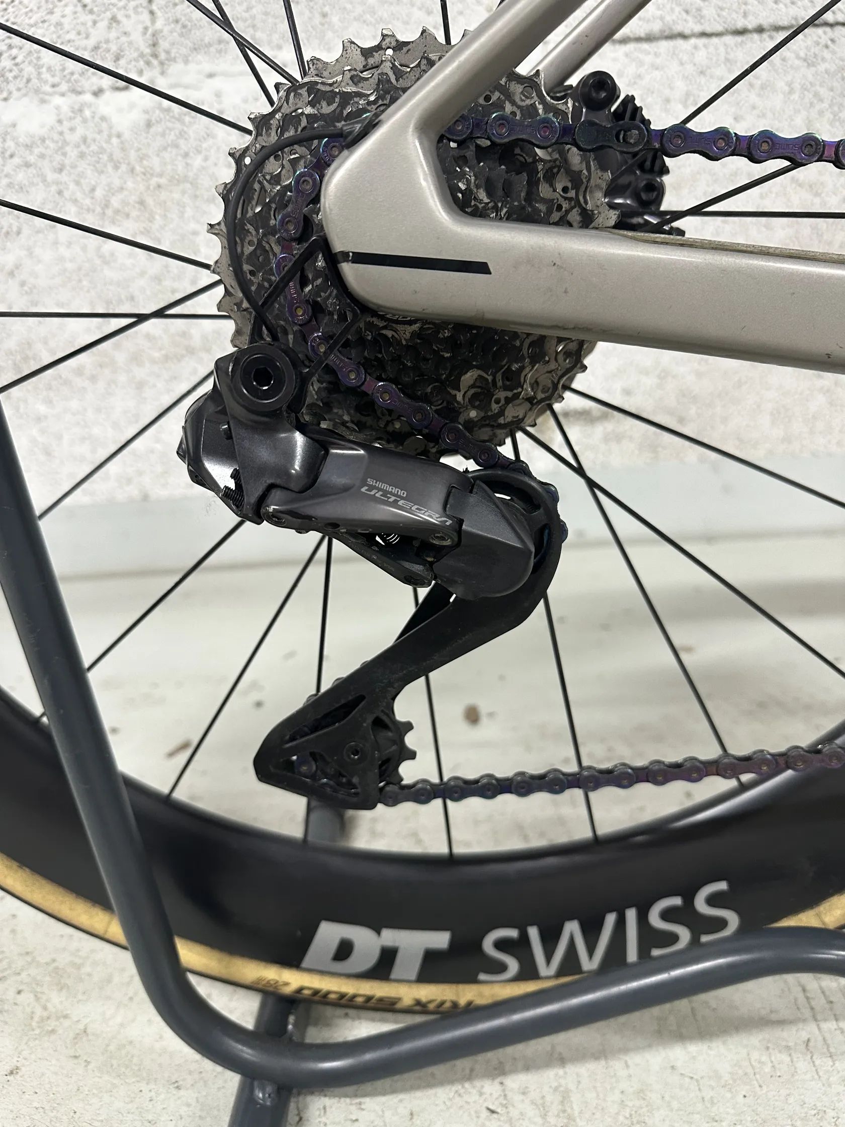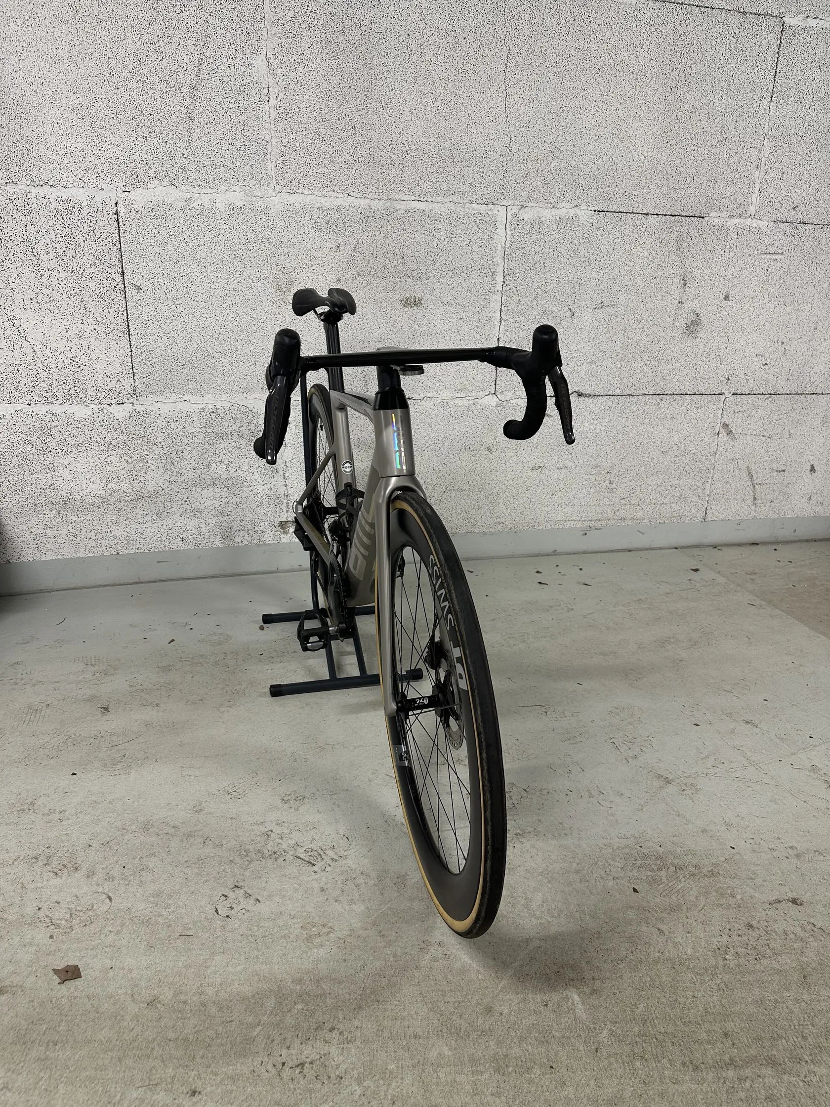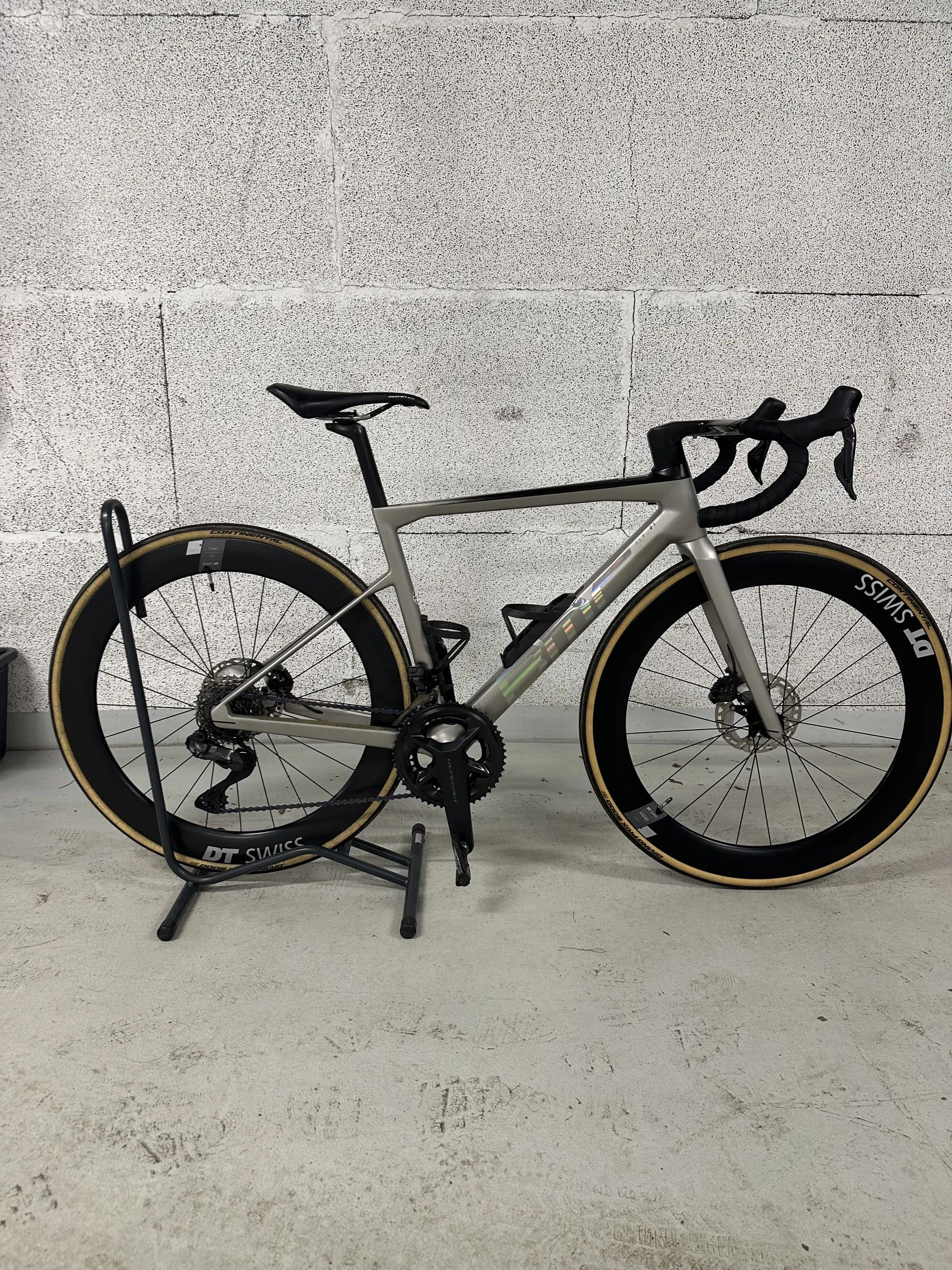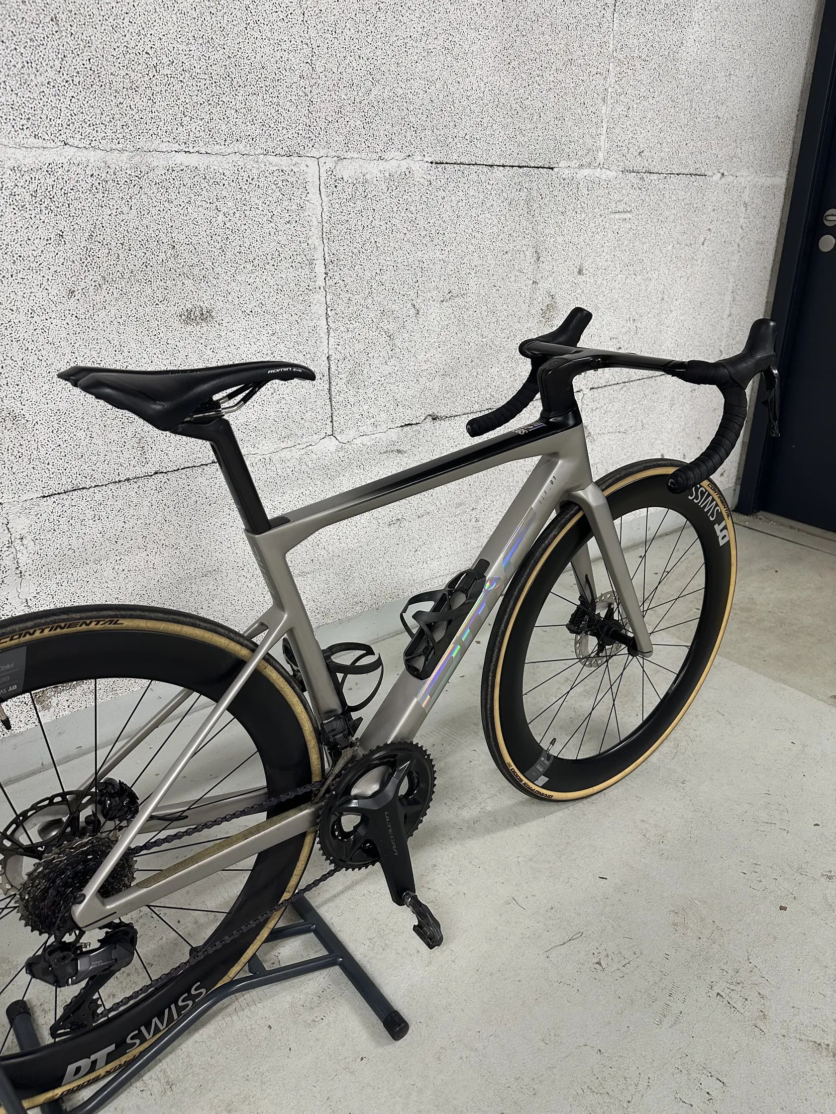 • sada Shimano Ultegra Di2, 12 rychlostí • kazeta Ultegra 11-34 • Převodníky 52/36 • karbonová kola DT Swiss ARC 1100 • pravidelně servisované a udržované • výborný technický stav • pouze drobná kosmetická oděrka (viz foto) – vznikla při pádu kola po poryvu větru, když bylo opřené o zeď
