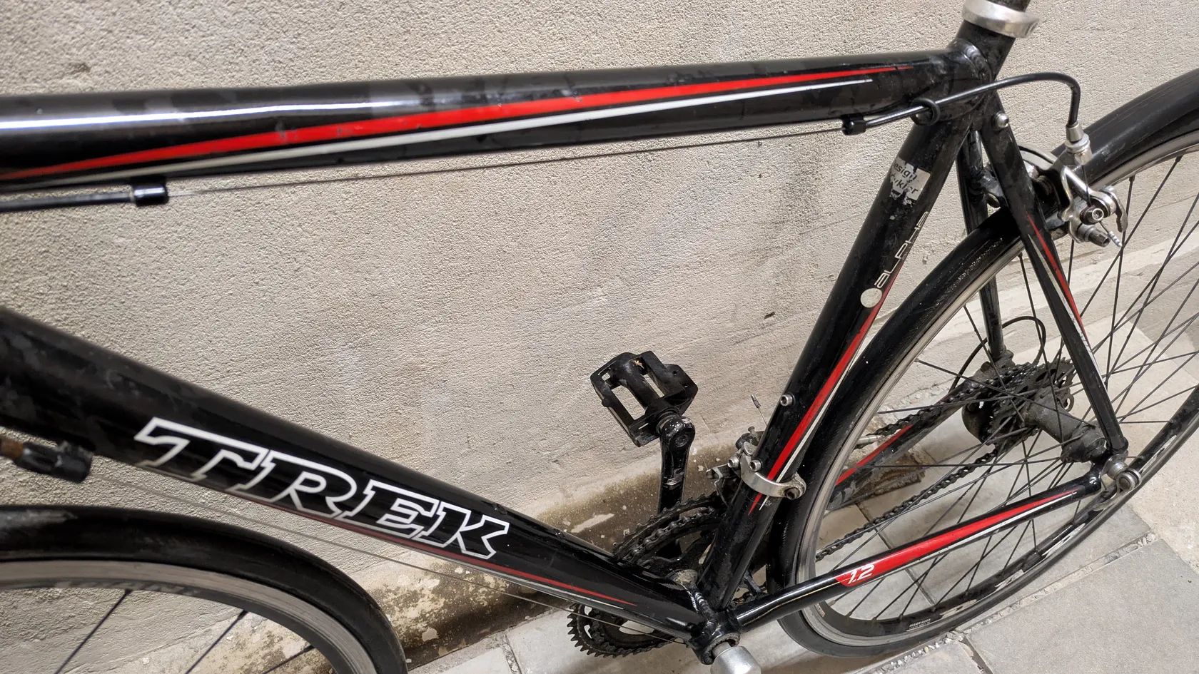 Prodám starší silniční kolo TREK. Kolo je plně pojízdné a funkční, vhodné jako vstupní silnička, na trénink, trenažér nebo do města.