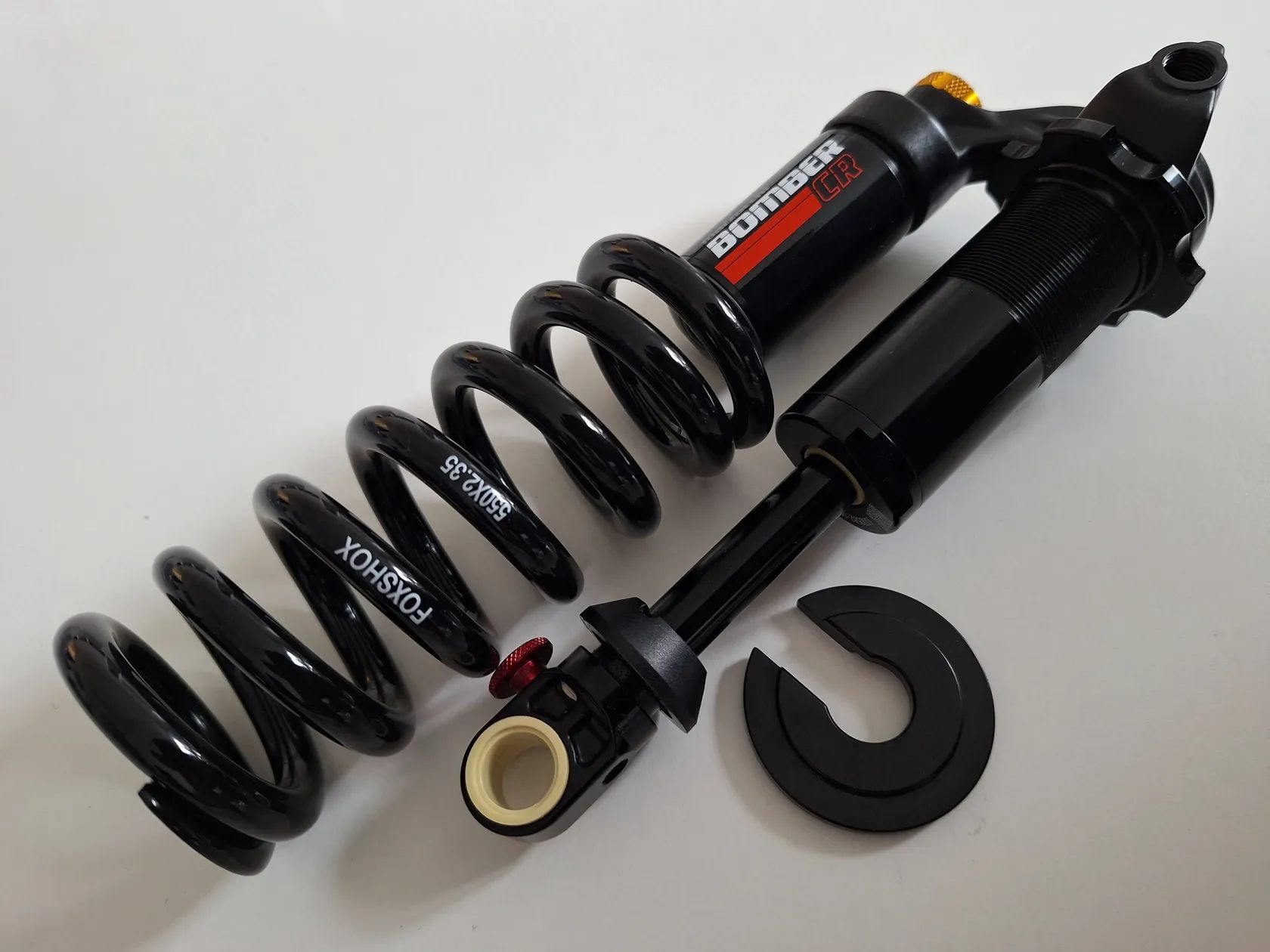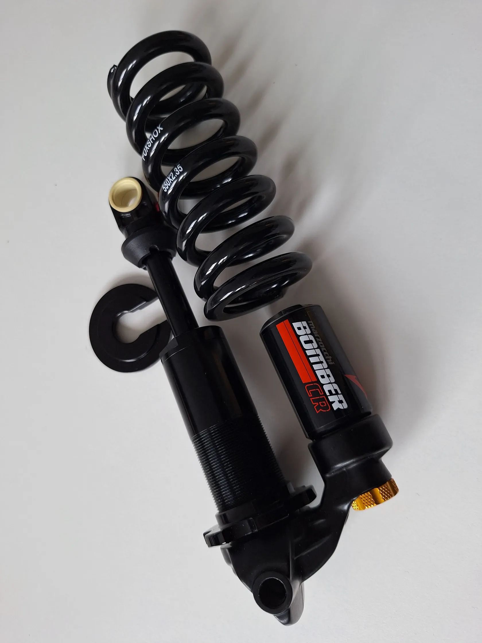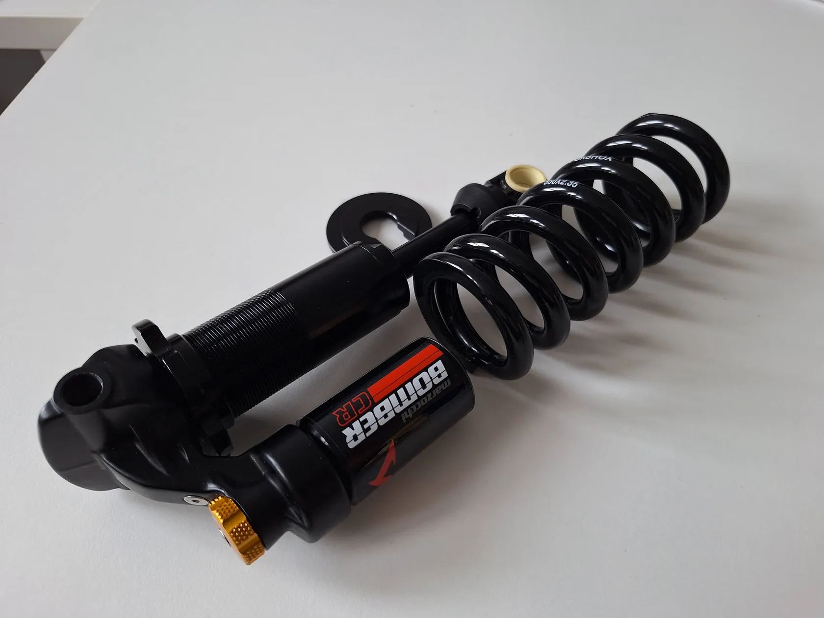 Prodám téměř nový pružinový tlumič Fox/Marzocchi BOMBER CR 185/55 verze Trunion. Včetně Pružiny Fox 550lb a vymezovací vložky. Stav nového kusu - viz. foto. Sundáno z nového kola. Důvod prodeje - nevyužití - pro mé využití trialového kola je vhodnější vzduchový tlumič. Nejsem schopen využít hlavních výhod pružinového tlumiče.
