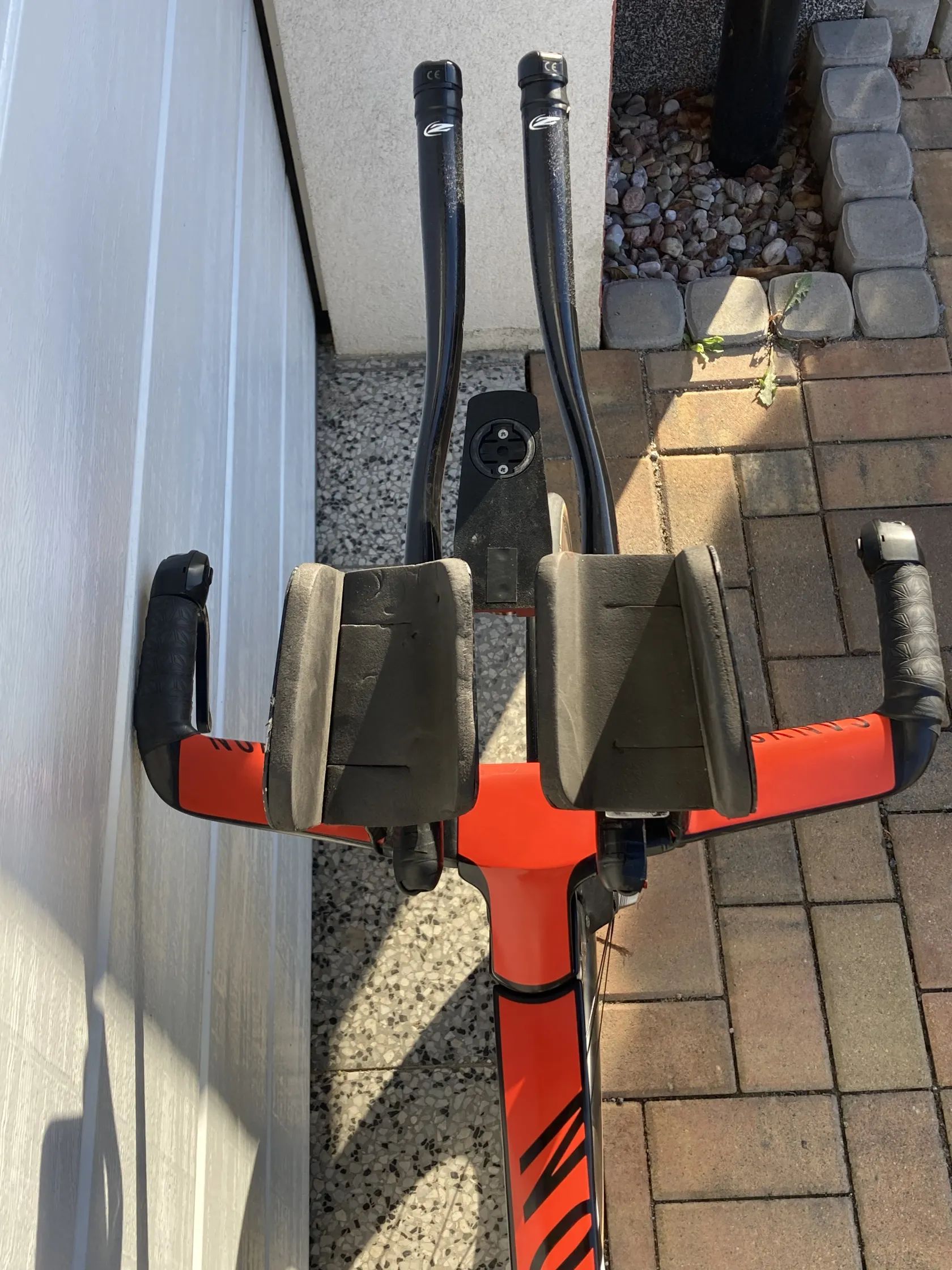 Výbava: • Přehazování Shimano Dura-Ace Di2 2×11 • Kliky - středové složení Ultegra • Integrované brzdy (pouze brzdové špalky SwissStop) • Kokpit Zipp s velkým množstvím podložek • navíc domácí výroba nástavců Aerocoach s nastavitelnými úhly