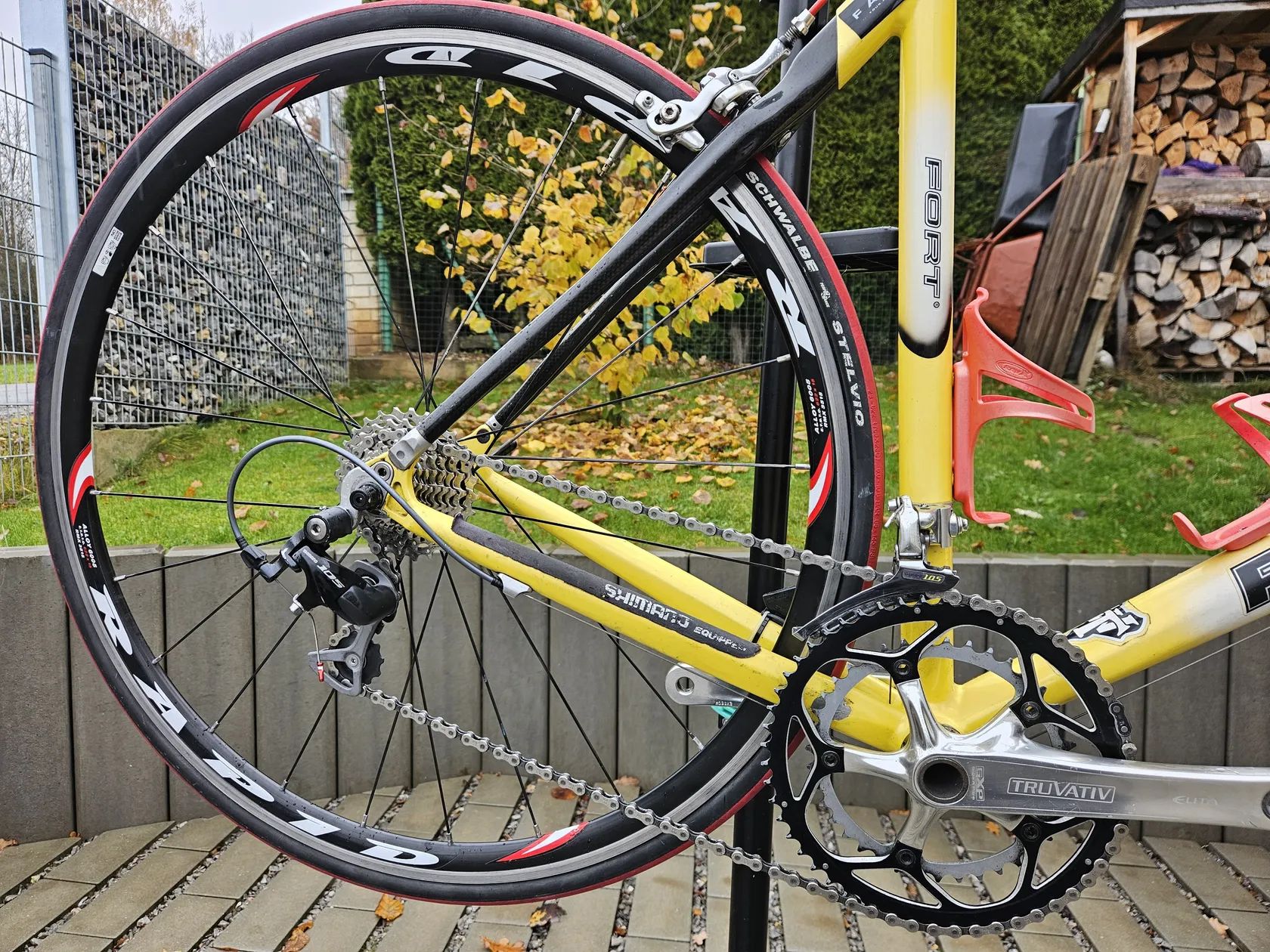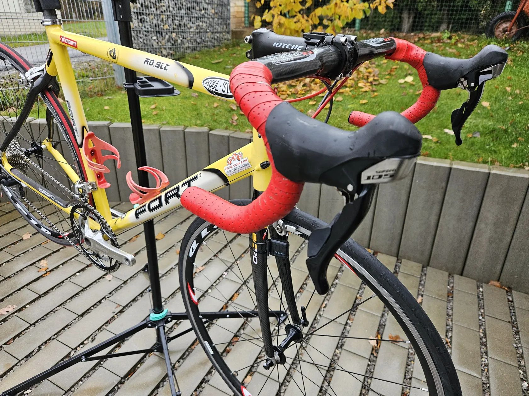Rám L (já mám 188), hliník Sada Shimano 105, 10sp, přehazka, kazeta, dualy měněné, viz foto, brzdy starší 105 Kliky truvativ 53/39 Karbonová vidlice EC 70 Karbonnová zadní stavba Karbonová sedlovka Gir's Karbonové řidítka Trigon, omotávka fizik (můžu přihodit hliníkové berany) Sedlo Fizik AriOne (můžu dát origo Fort) Kola Fulcrum Rapid na Novatech nábojích s ložisky (krásný hladký chod)