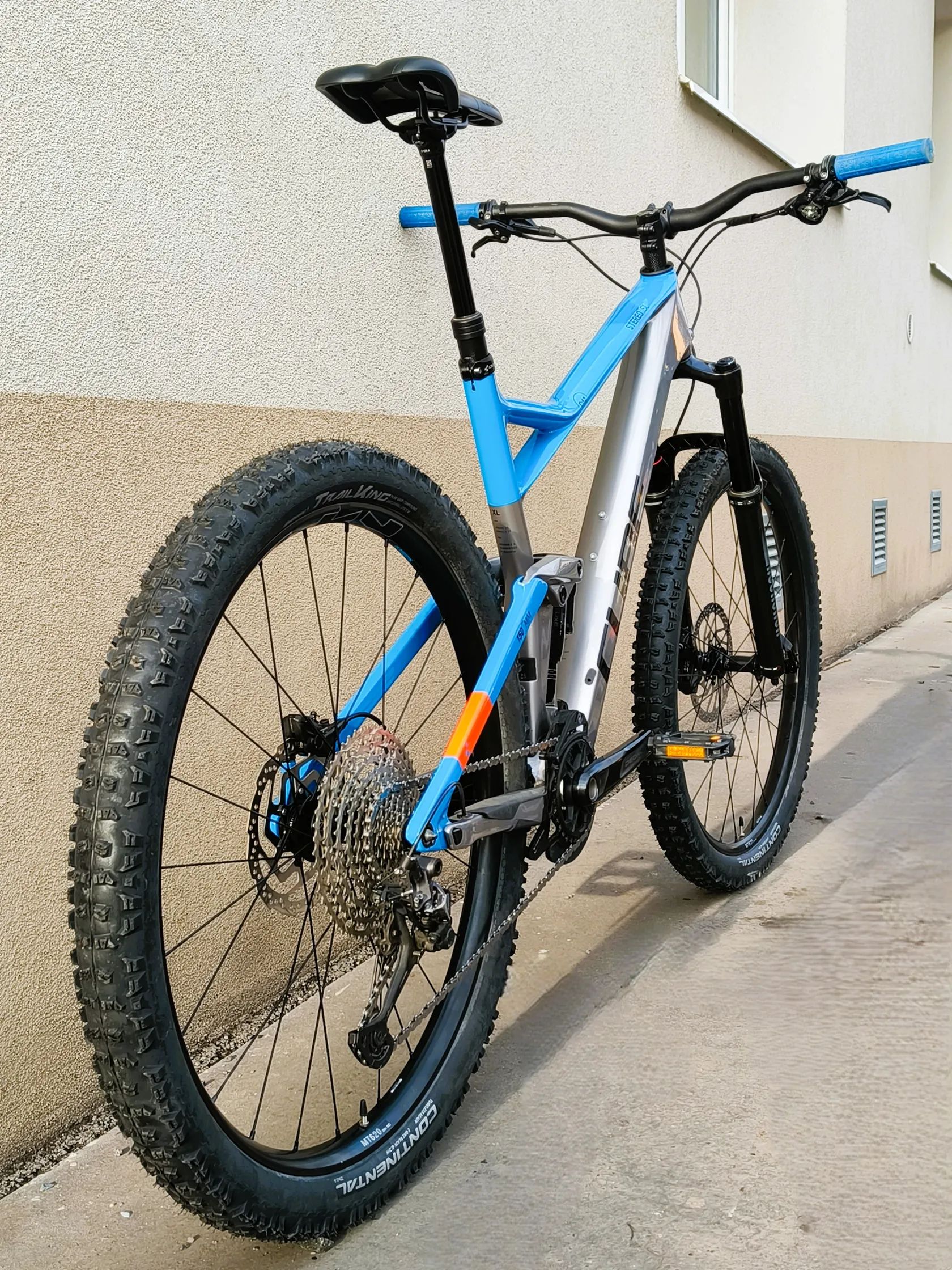 Prodám lehký a rychlý trailový/enduro bike CUBE Stereo 150 SL 2022 velikost XL. Vhodné na postavu cca 178 - 193 cm.Kolo je postavené z převážně nových dílů, od té doby nebylo používáno (pouze zkušební jízda). Základem je celokarbonový rám, který byl minimálně používán, naprosté minimum kosmetických vad, samozřejmě bez poškození. Nový je podvozek: Rock Shox 35 RL Gold se 160 mm zdvihem a tlumič Rock Shox Super Deluxe Select, Dále nové výplety Shimano WH-MT620-TL, nové pláště Continental Trail king 29 x 2,4", nová je také teleskopka se 150 mm zdvihem, nové brzdové destičky, brzdové kotouče, řetěz a sedlo. Kazeta je zánovní, kliky jsou původní k rámu, stejně jako přehazovačka XT a brzdy Shimano MT520. Kolo je naprostý univerzál, pocitově jezdí jako kdejaké XCčko (downcountry), jede velmi lehce a rychle, ochotně zrychluje, přesto kolo má ambice sjíždět ostré traily, případně i snést nasazení v bikeparku. Ideální na lovení trailů po okolí, kdy příjemně a s lehkostí vyveze nahoru a nesebere tolik sil a jízda dolů je potěšení bez kompromisů. Výbava (shrnutí): Rám: CUBE Stereo SL 2022 vel XL, vnitřní vedení bowdenů, carbon Vidlice Rock Shox 35 RL Gold, zdvih 160 mm Tlumič: Rock Shox Super Deluxe Select, zdvih zadní stavby 150 mm Pohon: Shimano XT 1x12 Kazeta Shimano Deore 10- 51 zubů Brzdy: Shimano MT520 (4-pístkové), kotouče 203/180 mm Výplety Shimano WH-MT620-TL 29" 622 x 30C Pláště: Continental Trail King 29x2,4", kevlarová patka Teleskopická sedlovka, zdvih 150 mm V případě zájmu mohu kolo přestavět na podvozek FOX: Vidlice FOX 36 Rhythm zdvih 160 mm a tlumič FOX FLOAT X Performance. Tlumič je po čerstvém servisu, vidlice je zánovní. V případě zájmu o přestavení na tyto díly by byla výsledná cena 38900 Kč. Případně přidám díly zvlášť za 7000 Kč Možnost vyzkoušení Praha 9 Vysočany Servis a prodej kol mám jako vedlejší činnost na IČO, kolo prodám na fakturu, tudíž kupující dostane 12 měsíců záruku na případné skryté vady.